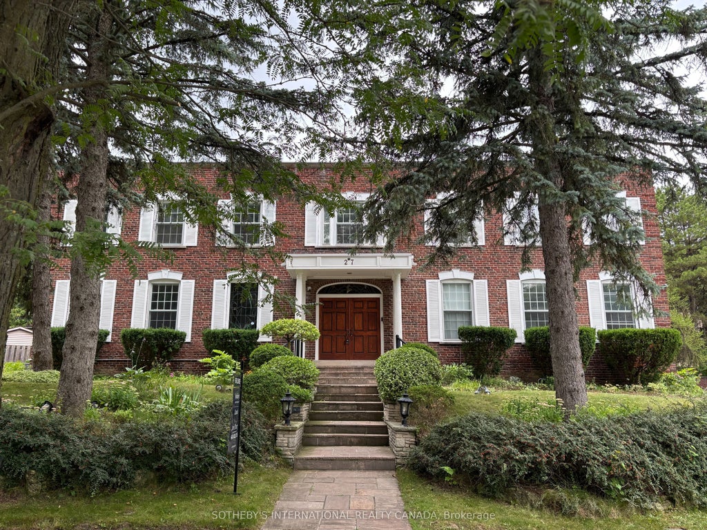 Welcome to discover this extraordinary Georgina Revival hallmark. Quietly situated on a private enclave of the prestigious St. Andrew-Windfields neighborhood, this magnificent residence boasts approximately 6,348 sq ft above grade and features five (5) bedrooms, each with a full ensuite upstairs. The expansive central layout announces a formal entrance and graceful symmetry. Tasteful architectural refinements and recent upgrades throughout. An elegant circular stairwell, European oak panelling, splendid mirror walls, hand crafted vanities, and intricate beveled lead designs all mingling to create artistic and sensational aroma for the home. The main kitchen is equipped with a secondary kitchenette, offering a variety of cuisine options. Two sets of appliances plus a freezer in the lower level are all included. A wealth of sash windows and glass entrances, thoughtfully proportioned to provide abundant natural light. L-shape courtyard, lash backyard, and ample side yard provide a high level of privacy and comfort for garden gathering and family relaxation. A spectacular underground multi-purpose sport court and enormous game room is well-loved for year-round recreational activities. Extra large three-car garage, six additional ground parking spaces, and a basketball stand conveniently appointed at the north end of the building. Hot Water Tank owned. Partially furnished. The entire property and furniture presented are included, with the exception of the covered indoor pool wing, which is locked for safety. The location features a perfect proximity to top public and private schools, Granite Club, Sunnybrook Hospital, Hwy 401, golf courses, fine dinings and upscale shoppings. 27 Junewood Cres proudly enhances this exclusive community which is known for its sophisticated executive living and unparalleled social connectivity.