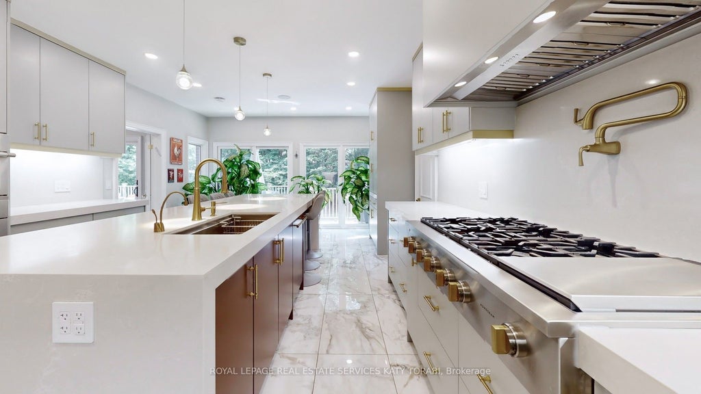 Exceptional Red-brick Georgian Estate In A Prestigious Neighbourhood. Welcome To This Timeless Luxury Residence Offering Approximately 6,260 Sq Ft Of Refined Living Space, Nestled On An Expansive 100 By 133.66 Ft Lot With Mature Trees And A Gated Front Garden. Step Inside To A Grand Two-storey Foyer Featuring Polished Marble Floors, A Showstopping Chandelier, And An Elegant Curved Staircase. Rich Hardwood Floors And Custom Millwork Flow Seamlessly Throughout The Main And Upper Levels. The Chefs Kitchen Is Outfitted With High-end Appliances, Sleek Cabinetry, Quartz Counters, Brass Hardware, And An Oversized Island Perfect For Entertaining. Multiple Walk-outs Extend To A Spacious Outdoor Deck With Distinct Lounge And Dining Areas, Ideal For Hosting Or Relaxing In Privacy. This Home Boasts Generously Sized Bedrooms With Custom Closets And Sun-filled Windows. Spa-inspired Bathrooms Feature Heated Floors, Double Vanities, Luxurious Tilework, Custom Cabinetry, And Designer Gold Fixtures. The Fully Finished Basement Redefines Lifestyle Living featuring A Billiards Area, Home Gym With Mirrored Walls, Yoga And Meditation Room, A Stunning Glass-enclosed Wine Display, Full Bathroom With Walk-in Shower, And A Stylish Bar With Built-in Cabinetry. Two Separate Laundry Roomsone On The Upper Level And One In The Basement offer Added Functionality. The Private Backyard Is Surrounded By Lush Landscaping And Includes A Large Deck With BBQ Hook up, Multiple Sitting Zones, And Walk-outs To Upper Balconies Overlooking The Treed Grounds. Ideally Located Near Top-ranked Schools, Scenic Parks, And Upscale Amenities, This Exquisite Property Blends Elegant Design, Modern Comfort, And Resort-like Livingoffering A Rare Opportunity In One Of The City's Most Desirable Neighbourhoods.