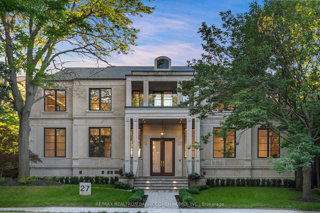 Architecturally Iconic Estate on 100 Ft. Lush Frontage, Situated on an Inside Crescent Lot in One of Toronto`s Most Prestigious Neighbourhoods. Approximately 11,000 Sq.Ft. of Bespoke Luxury Including a 3 Built-In Car Garage, 6+2 Distinguished Bedrms, 11 Baths & Finished Basement. Meticulously Designed by an Acclaimed Architect & Builder. Clad in Indiana Limestone W/Architectural Brick Accents, Enhanced by Lush Landscaping, a Heated Driveway & Dramatic Exterior Lighting. Exceptional Craftsmanship is Showcased Throughout W/Custom Walnut & White Oak Millwork, Imported European Slabs, Soaring Ceilings, Elegant Wall Paneling, Detailed Moldings, Heated Floors & Custom Wood Accent Walls. Floor-to-Ceiling Tilt & Turn Aluminum Windows & Sliding Doors, Flood the Home W/Natural Light. The Grand Foyer Features Imported Italian Slabs, a Striking Scarlett O`Hara Staircase, and an Oversized Skylight, Setting a Refined & Elegant Tone. Expansive Principal Rooms Highlight Chevron Hardwood Floorings, Gas Fireplaces, And Book-Matched Italian Slab Feature Walls.The Chef`s Kitchen Offers Dual Islands, Top-Of-The-Line B/I Appliances, a Butlers Pantry W/Servery Access to the Formal Dining Room & Custom Cabinetry. The Breakfast Area & Oversized Family Rm. Include Large-Scale Aluminum Sliding Doors Leading to an Expansive Deck & Concrete Swimming Pool. A 4-Stop Elevator Services All Three Levels, Plus an Additional Private Lift W/Direct Garage Access Fully Accessibility-Friendly. The Primary Retreat Boasts Coffered Ceilings, a Wet Bar, Fireplace, Boutique-Style Hers Dressing Boudoir, His Closet, And a Lavish 7-Piece Ensuite Designed to Impress. The Entertainment-Ready Basement Boasts an Oversized Recreation Area W/ 2 Double Aluminum Sliding Doors Offering Garden-Level Views And Abundant Natural Light, a Large Gym W/Washroom and Dry Sauna, a Home Theatre, Additional Washer/Dryer, And Direct Access From the Garage Complete W/a Dog Wash Station & Elevator Access. The Finest in Luxury Amenities!