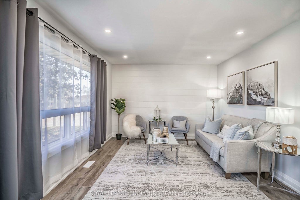 RENO'D LEGAL DUPLEX! Stylish Design, Clean, Updated Roof, Windows, Facade, Gutters, Large Paved Driveway, HVAC, Pot Lights, High-End Kitchens W/Quartz Countertops, Backsplash, Valance Light, Stainless Steel Appliances, Bathrooms, New Main Sewage Line, Upgraded Insulation & more! Separate Entrance to Bsmt Apt, 2 Sep Hydro Meters, 2 Stackable Laundry Sets, 6 Parking Spots & 2 Sheds. Turn-Key Investment. Well Maintained! Sought-after Donovan Area near schools, parks, it offers both a serene lifestyle & a great investment opportunity! Conveniently Located Off HWY 401 & Short Drive To All Amenities! The main floor vinyl will be replaced.