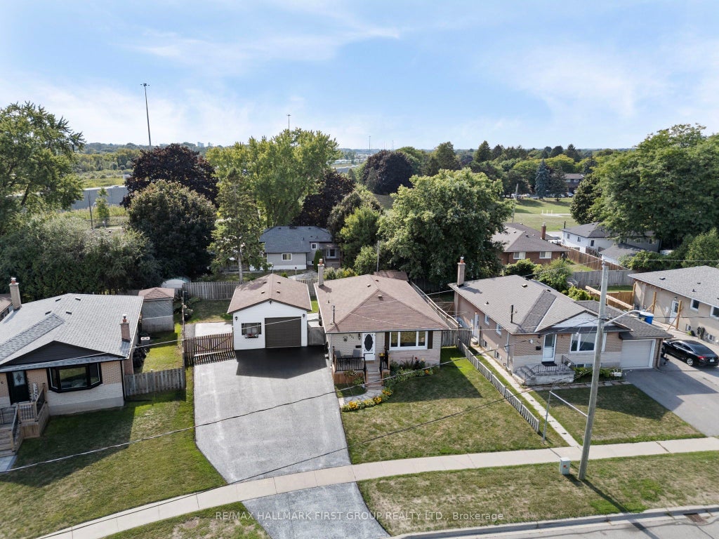 Looking for plenty of parking for 6 cars and a detached heated and insulted garage? This bungalow with in-law potential is perfectly situated on a generous pie-shaped, fully fenced lot with a sunny western exposure. Nestled in an established neighbourhood close to schools, parks, shops, downtown amenities, and with quick access to Hwy 401 and transit, this home offers both convenience and charm.A true standout feature is the separate 400 sq. ft. detached heated and insulated garage/workshop, measuring 18' x 24'. Complete with windows, fluorescent lighting, 40 AMP electrical service, a 45,000 BTU gas heater, shelving, storage loft, and built-in workbenches, its the ultimate space for hobbyists, car enthusiasts, or anyone in need of a functional man cave. Inside, you'll find a spacious open-concept kitchen featuring stainless steel appliances, crown mouldings, and a handy pass-through to the living room. The living room shines with hardwood flooring and a large picture window that fills the space with natural light. Step out to the welcoming front deck, complete with aluminum railings and spindles. The thoughtful layout continues with a separate side entrance for easy access to the basement. A French door leads from the main floor into a versatile side vestibule. The flexible third bedroom (or office space) comes with laminate floors, a Murphy bed, and direct sliding glass door walk-out to the covered backyard patio. This area is perfect for lounging, entertaining, or enjoying summer barbecues, all while overlooking the landscaped garden. The fully finished basement adds even more living space with two additional bedrooms, a large open recreation room featuring a cozy gas fireplace, and a full three-piece bathroom with a separate shower stall. Additional highlights include ample driveway parking for up to six cars, neutral freshly painted interiors, newer eavestroughs and a move-in ready presentation that reflects the care and pride of ownership throughout.