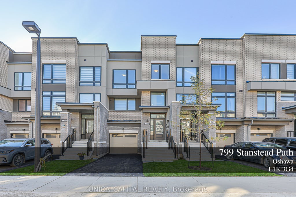 Welcome to this stylish, less than 2-year-old townhouse by Stafford Homes, offering the perfect balance of comfort and convenience in North Oshawas thriving Greenhill neighborhood. Step inside and be greeted by a bright, open-concept layout with thoughtful upgrades throughout. The sun-filled living room opens to a private balconyan inviting space to relax or entertain. Upstairs, the primary suite features a 4-piece ensuite and its own balcony, creating a perfect retreat. Two additional bedrooms provide plenty of space for family or guests. The versatile ground floor offers an open area ideal for a home office, gym, or entertainment room, complete with garage access and a walkout to the backyard. With a mudroom, laundry, and parking for two vehicles, this home is designed for both style and everyday convenience. Located close to schools, parks, shopping, dining, and transit, this home is more than just a place to liveits a lifestyle.
