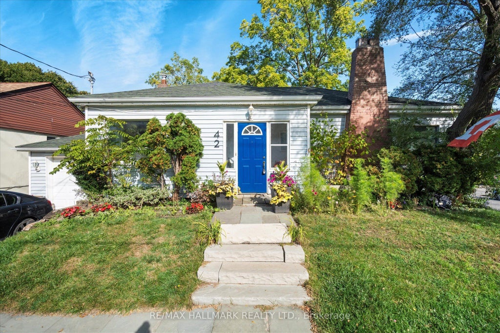 Welcome to 42 Anson Ave! This beautifully renovated corner lot bungalow rests on an impressive 55 x 99ft property in one of Scarboroughs most sought after neighbourhoods. Step inside to a bright, open concept living space adorned with hand scraped hardwood floors, elegant crown moulding, and oversized windows that bathe the home in natural light. The inviting family room is anchored by a classic wood burning fireplace, perfect for cozy evenings and family gatherings. The chef inspired kitchen is a true showpiece, featuring quartz countertops, custom solid cabinetry, stainless steel appliances, and a matching breakfast bar. From here, walk out to your expansive deck overlooking a private backyard oasis, complete with mature trees, full fencing, and a well-maintained in ground pool. The finished lower level feels like a natural extension of the home, thanks to full above grade windows that keep the space bright and welcoming. It offers two additional bedrooms, a full washroom, and a walk-out ideal for multigenerational living, guest accommodations, or an easy conversion into a self-contained in-law suite. Enjoy unmatched convenience with quick access to Scarborough GO, TTC, and Highway 401. Everyday essentials, shopping, and dining are just minutes away, and the home is located within top-rated school districts. Stylish, modern, and priced to sell, this urban retreat is not to be missed!!