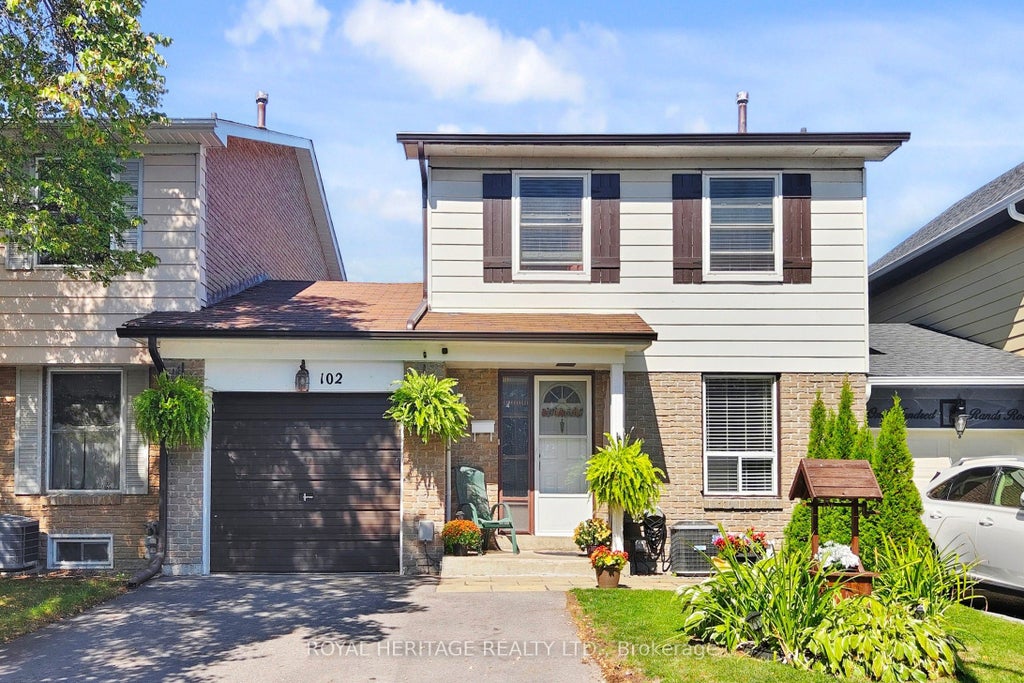 Welcome to this charming family home nestled in one of South Ajax most desirable, mature communities. Step inside to a bright open-concept main floor, featuring a renovated kitchen with modern finishes, seamlessly flowing into the living and dining areas. The warmth of dark engineered hardwood floors adds elegance and character throughout. Upstairs, you'll find spacious bedrooms, including a primary retreat with his & hers closets and a semi-ensuite bath for added convenience. The finished basement is perfect for entertaining, complete with pot lights, a cozy wood-burning fireplace (as is) , and built-in wiring for surround sound. Ideal for movie nights or family gatherings. Step outside to your own outdoor oasis! This home features a spacious, fully fenced backyard with plenty of room for kids, pets, or weekend gatherings. Enjoy summer barbecues and relaxation on the stone patio, complete with space for outdoor dining and lounge seating. A charming garden shed with window boxes adds both functionality and character, while mature trees and landscaping create a sense of privacy and tranquility. walking trail extending from Oshawa to Rouge Hill, walk to schools, parks, transit and minutes to hwy 401, 412 & 407, shopping and churches. Perfect for entertaining or unwinding, this backyard is a true extension of your living space.