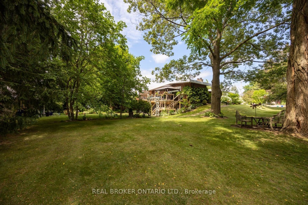 Approx 1/2 Acre in Town! Move right into this meticulously maintained 3+1 bedroom bungalow, nestled on an impressive half acre lot right in town -- a truly rare find! This beautiful home offers a seamless blend of comfort, style and space, both indoors and out. Lavish kitchen features granite counters, tile backsplash, built-in wine rack, stainless steel appliances and plenty of cupboard space. The breakfast bar adds casual dining convenience, while the kitchen overlooks the spacious dining room with bamboo flooring, and a walk-out to the expansive deck - perfect for hosting friends and family. The kitchen cabinetry extends into the dining area creating more storage options for dining, and for displaying your favourite dishes. The sunken living room exudes warmth with a cozy wood burning fireplace, a vaulted ceiling and a picture window that frames views of the spectacular backyard retreat. All three main floor bedrooms are good-sized with ample closet space, hardwood flooring. and offering comfort and functionality. The finished walk-out basement provides even more living space, including a large rec room with laminate flooring and another wood-burning fireplace, a fourth bedroom, a 3-pc bathroom with a luxury shower system, huge laundry room, and abundant storage options. The showstopper is the outdoor space, a private, park-like yard filled with mature trees, vibrant perennial gardens, a large deck, a patio area, and two sheds (one that could be used as a seasonal art room/craft room as has hydro and finished inside with a b/i desk). Whether entertaining or relaxing this yard has it all. This property is truly move in ready, a great chance, to own a rare in-town , private lot with space to roam.