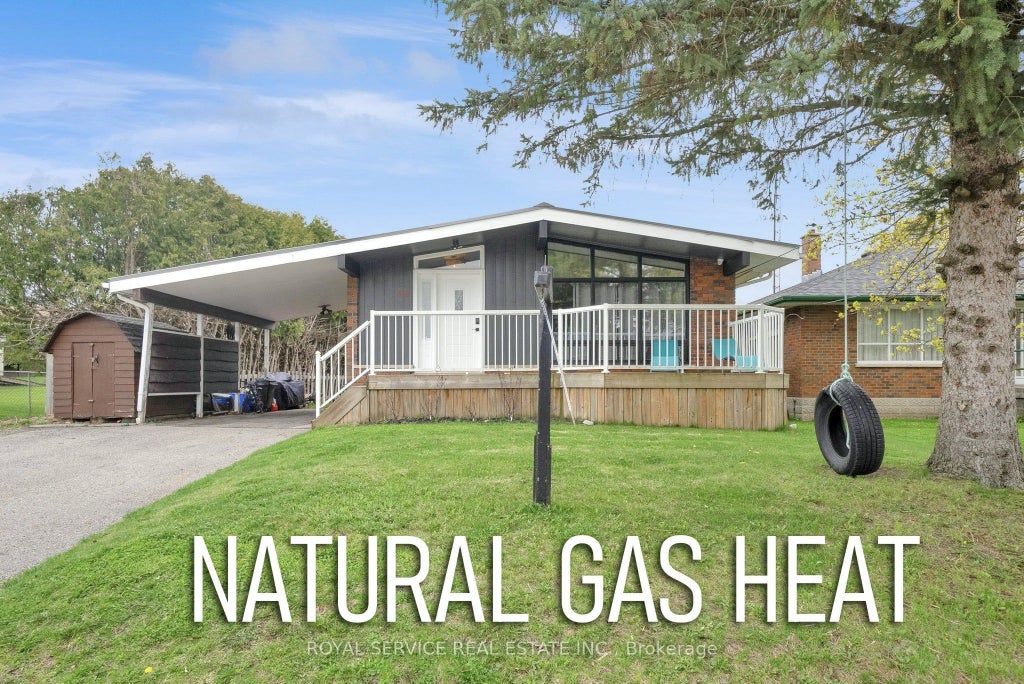 Terrific Starter Or Downsizer. Detached 3 Bedroom Brick Bungalow In The Quaint Villiage Of Orono. Surrounded By Greenspace & Crown Land. Walking Distance To Orono's Downtown Shops & Orono Fair Grounds. New Steel Roof, Newer Gas Boiler, New Side Entry Door. Truly Open Concept Floorplan With Cathedral Ceilings Throughout and Large Windows. Sunny Living Room With Fireplace, Newer Wide Plank Laminate Floors, Open To Dining & Kitchen Area, Breakfast Bar, Granite Counters, Heated Tile Floor, Stone & Glass Backsplash . 4 Piece Bathroom With Modern Updated Cabinetry. 3 Nicely Sized Bedrooms. Partly Finished Basement With Seperate Entrance, Brick Fireplace With Gas Insert, Bar Area & Large Storage Room. Easily Finish The Basement as a Nanny Suite or Income Apartment. Small Town Living With All The Amenities & Quick Access To Hwy 115 & 407. Cozy Natural Gas Heat , Heated Floors & Two Fireplaces!