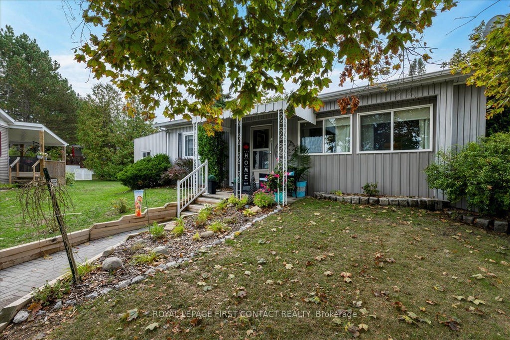 Great location and close to everything. Nestled in the vibrant adult community of Sandycove Acres North conveniently located close to the community hall, swimming pool and local plaza. This clean and bright 2 bedroom, 1 bath home features a 916 sq. ft floor plan with vinyl siding exterior, covered front entrance, add-on sunroom side entrance, rear bedroom access to a multi-tiered deck and an attached storage shed. The interior is painted in a light neutral tone, crown moulding, updated maple kitchen, laminate flooring in main living areas with carpet in the bedrooms, newer windows, forced air gas furnace and central air, gas fireplace, panelled interior doors with lever hardware and an updated bathroom. Sandycove Acres is close to Lake Simcoe, Innisfil Beach Park, Alcona, Stroud, Barrie and HWY 400. There are many groups and activities to participate in along with 2 heated outdoor pools, 3 community halls, wood shop, games room, fitness center, and outdoor shuffleboard and pickle ball courts. New assumed lease fees are $777.09/mo. and $144.80 /mo. taxes. Come visit your home to stay and book your showing today.