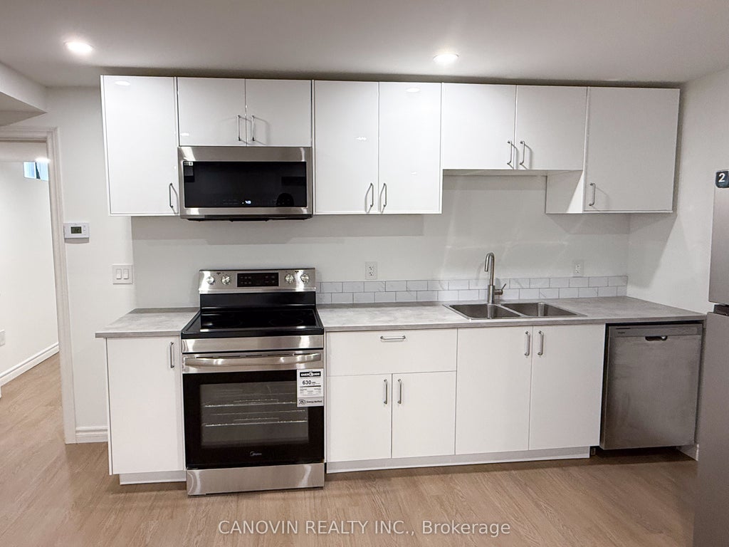 Spacious, newly finished 1-bedroom basement apartment with private entrance! Open Concept, Bright, Great Layout & With Its Own Separate Entry. This bright and modern unit features a large living area with a full-sized window, pot lights all rooms, a 3-piece bathroom, and dedicated laundry. Enjoy independent heating, air conditioning, and a private hot water tank exclusively for this unit. Located in a quiet, family-friendly neighborhood close to schools and parks, Steps to Upper Canada Mall, Costco, Walmart, Short drive to Highways. No smoking, no pets. One Parking Space On Driveway. Tenant Responsible For 1/3 of utilities.