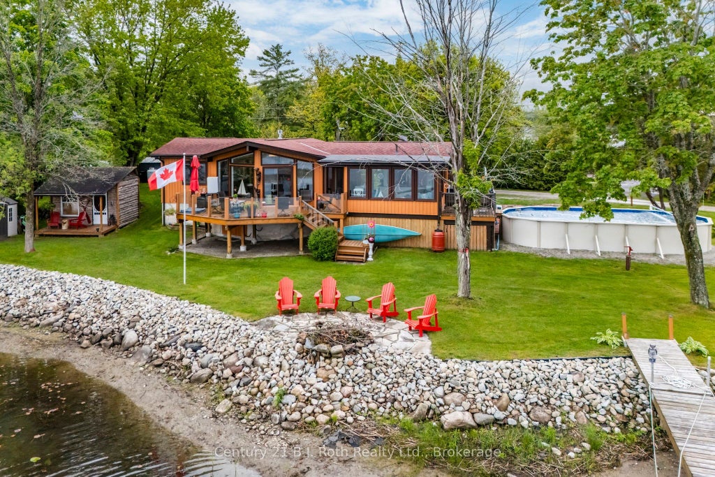 Waterfront Living on Georgian Bay! Welcome to 24 Wilcox Rd, a charming year-round retreat nestled on the shores of beautiful Georgian Bay in Waubaushene. This 3-bedroom, 1-bath bungalow offers an open-concept layout with stunning water views and seamless indoor-outdoor living. Enjoy your morning coffee or evening sunsets from the spacious decks located on both the waterside and poolside of the home. Perfect for entertaining or relaxing, the property also features an above-ground swimming pool, private dock, small boat launch, and a cozy bunkie w/electricity, for guests, crafting space or additional storage. Some upgrades include upgraded insulation, new water softener (2025), roof (2017), hot water tank replaced in the past 3-4 years, split A/C heat pump 2-3 years ago, new front door 4 years ago, interior doors replaced a few years ago, newer eavestrough. Whether you're looking for a peaceful getaway or a place to make lifelong memories by the water, this property checks all the boxes. Just 90 minutes from the GTA with easy highway access, it's the perfect blend of cottage charm and convenience.