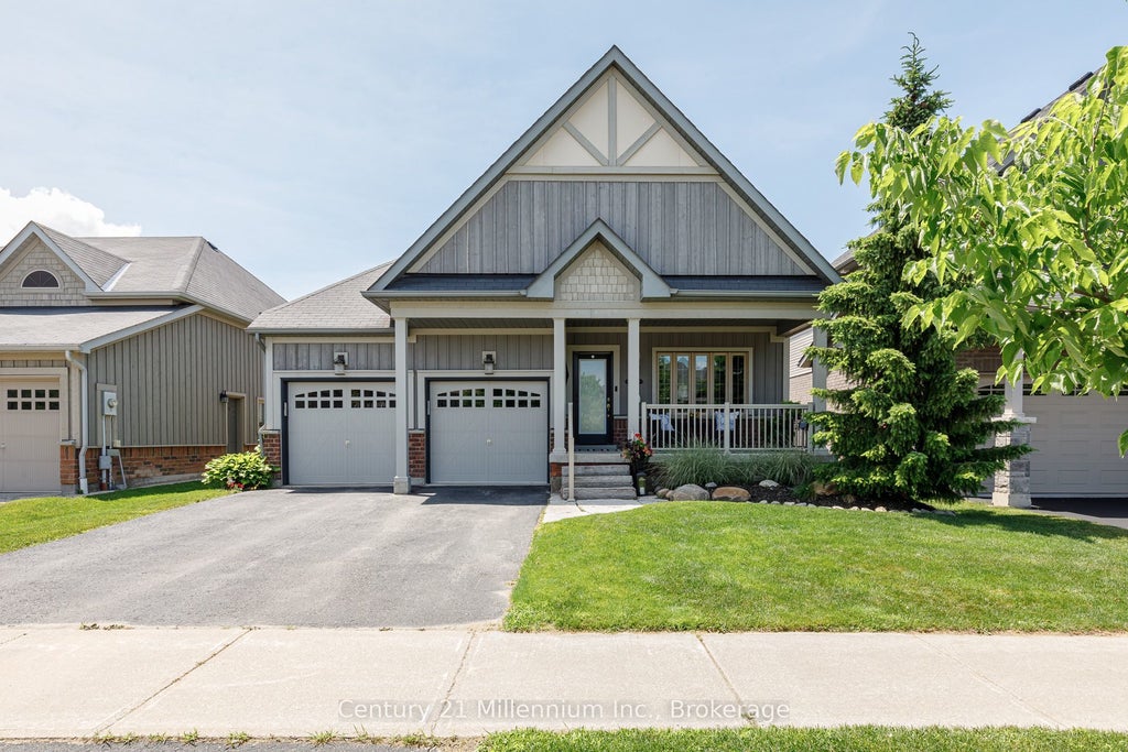 Discover effortless living in this bright, spacious bungalow with stunning escarpment views in Collingwood's coveted Pretty River Estates. Perfect for those seeking practical, main-floor living without compromising on comfort or quality. The chef-inspired kitchen features granite countertops, double wall ovens, a 5-burner gas cooktop, and an oversized island ideal for casual meals or entertaining. The open-concept living area includes a sleek gas fireplace and walkout to a full-width, west-facing deck with pergola and natural gas BBQ hook-up, perfect for enjoying golden-hour evenings.The main floor primary suite is tucked privately at the back of the home, complete with generous closet space and a well-appointed ensuite featuring heated floors, double sinks and a walk-in shower. A second bedroom enjoys access to a jack-and-jill bath, making it ideal for guests or a home office. The practical laundry/mudroom offers plenty of cabinetry and direct access to the double garage, which includes a roughed-in EV charger for added convenience.The fully finished lower level feels like a walk-out with large west-facing windows that flood the space with natural light. It features two additional bedrooms, a third full bathroom, a spacious family room, and ample storage great for hosting visitors, hobbies, or multigenerational living. The kitchen and all bathrooms feature heated floors, providing comfort and luxury throughout. Located minutes from downtown Collingwood, top-rated schools, trails, and just a short drive to Blue Mountain, this home offers a rare combination of lifestyle, comfort, and functionality.