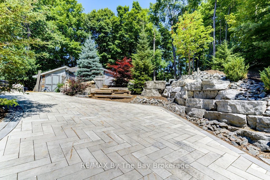 Uniquely located and nestled among mature trees near the Horseshoe Valley Resort area, this exceptional 3 bedroom, 3 bath home offers an unparalleled blend of comfort, luxury, and craftsmanship. No expense has been spared in creating a truly remarkable outdoor living experience. The front entrance is a stunning combination of limestone steps and a custom deck seating area, welcoming guests in style. The expansive, meticulously designed driveway features a striking herringbone pattern and easily accommodates 8 vehicles, while extensive retaining walls crafted from armor stone showcase the attention to detail throughout the property. Outdoor living is elevated with a serene koi pond, a heated stone surround around the hot tub area for added enjoyment, an inviting swimming pool, and a greenhouse for gardening enthusiasts. Inside, the bright open-concept kitchen, living room, and dining nookanchored by a cozy corner gas fireplacemake this home ideal for both entertaining and everyday living. This rare retreat seamlessly combines natural beauty with luxurious design, offering a lifestyle of peace, elegance, and resort-like comfort.