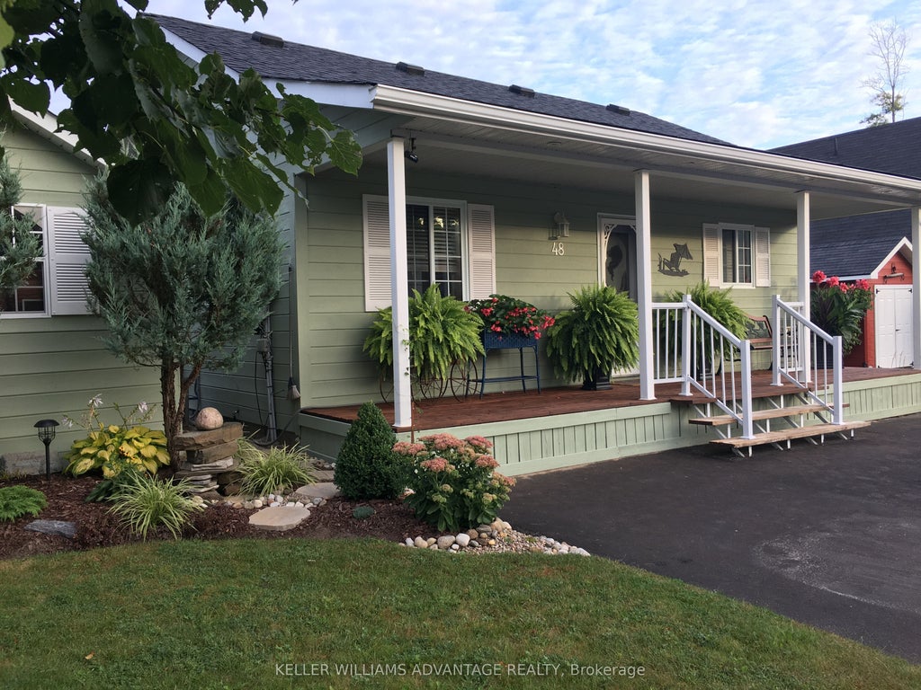 Welcome to your new home in Wasaga! This land lease home is the perfect option for 4-season living without the high purchase price. We're located in the most desirable part of the extended seasonal area of the Wasaga CountryLife resort, which means the owner is required to be away for a minimum of 30 days, which can be accumulated throughout the calendar year. This two bedroom, one washroom chalet style home features an open concept living, dining and kitchen area with cathedral ceilings. The kitchen includes a gas stove, built-in microwave and dishwasher as well as a fridge and reverse osmosis water system, and the gas fireplace in living room makes the space feel cozy and warm. With a washing machine and dryer in the hall between the bedrooms and washroom, you have everything on one floor and no stairs! The home is built on a full block crawlspace, which houses the furnace and hot water tank as well as providing lots of storage and making sure the 700 sf of the main floor is fully available. The back of the home has an expansive sunroom, with rebuilt and insulated exterior walls, new windows (2023) and window treatments. Add insulation to the floor and ceiling and you've got the perfect 4-season sunroom. On the outside of the home, the large driveway has easy parking for two cars, a wide front deck and wonderful landscaping around the sides, plus a shed for storage. One of our favourite parts of the home is the large back deck with railings, facing onto the man-made Lake Nipissing. The spacious backyard has a fire pit for relaxing evenings and the SW exposure means you're in for some fantastic sunsets! In addition to everything this home has to offer, you have access to all of the amenities in the resort, including tennis courts, indoor and outdoor pools and much more. If you love the beach, then you'll really love the fact that it is only a short walk away, as are local shops and services. If you're ready for a new home in Wasaga Beach, come check us out!