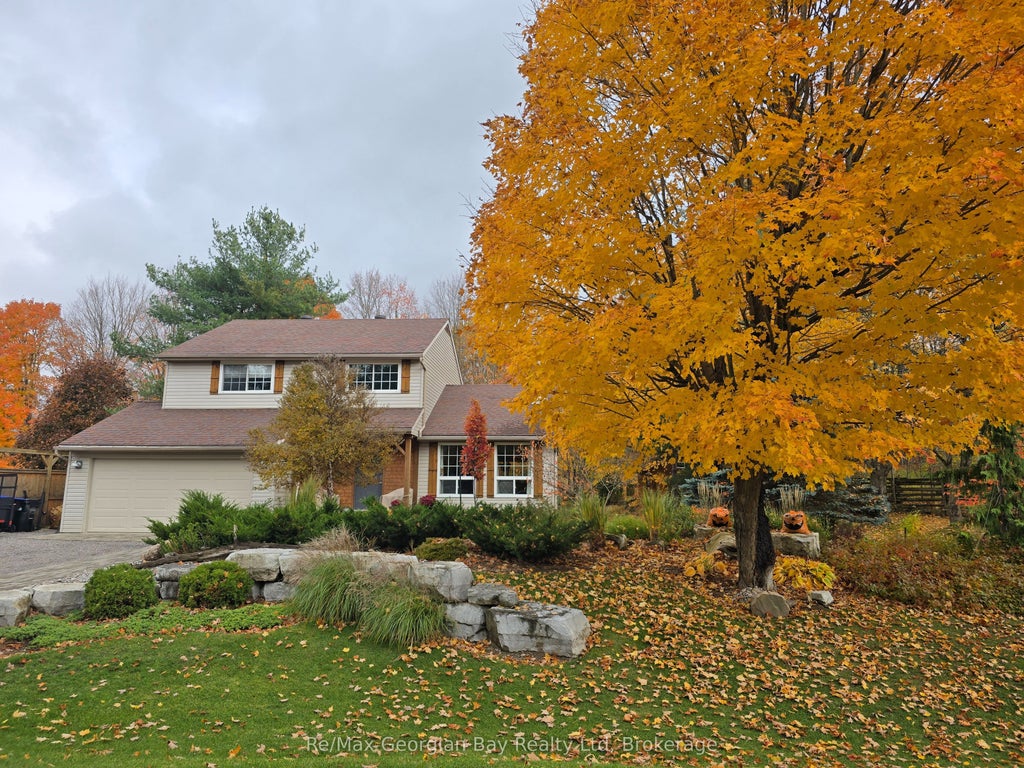 Welcome to your private oasis in beautiful Sugarbush featuring a Traditional Style home offering a warm, inviting atmosphere with natural materials, intricate details and some modern touches. This lovely 3+1 bedroom, 3 bathroom home sits on approximately 1/2 an acre corner lot with a dead end beside it offering even more tranquility to this stunning property! This property has been lovingly landscaped with low maintenance, drought tolerant gardens featuring armoured stone, a fire pit, an adorable bunkie and a great storage shed. Upon your arrival you will absolutely fall in love with it and even more so when you walk up the interlock driveway and walkway to enter the gorgeous cedar sided front entry into a large foyer featuring a cathedral ceiling accented with beautiful wood trim & staircase, a tiled floor along with a large closet. Make your way through the enchanting wooden barn doors into the large updated custom kitchen offering loads of cupboards, a pantry, granite counters, tumble marble backsplash, stainless appliances & the private deck from the walk-out off the dining room/living room. Features include a vaulted beamed ceiling, oak hardwood floors, a woodstove, a hot tub off the private deck, an office/den on the main floor, the 2 renovated bathrooms, a large family/games room, workshop room, 4th bedroom for guests and a brand new 2PC lower level bathroom, laundry room, workshop, 200 AMP service as well as an insulated double garage with inside entry. Updates include new vinyl and cedar shake siding (2023), attic insulation added along with an access, windows (2010) and back deck (2014). Call today as this is truly a must see property! If you are not familiar with Sugarbush, it offers great biking and hiking in nature along with trails right from your back yard as well as a short distance to ski hills and Coldwater or Orillia's Costco for shopping. Motivated Sellers says try an offer & a quick closing is available.