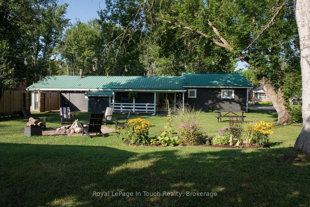 Welcome to this spacious property and home located in a community full of its own heritage and charm. You will love the feeling of the open-concept Kitchen, Dining, and Living Room Areas, All perfect for entertaining or keeping an eye on the kids while meals are prepared. There is a central 3-piece bathroom to these areas as well as a full 4-piece bathroom located within the bedroom area. The Bedrooms are all large and will easily create their own getaway places. The single-floor layout of this home creates an ideal home for retirement or provides an opportunity for families looking to create a separate In-Law Suite. Step outside to your covered porch area, as well as a screened-in porch area. Both overlook the large backyard with tons of room for recreation and play, summer BBQs, and cozy nights around the firepit. This property is unique with two separate detached garages as well as two paved driveways. There is plenty of parking and storage for vehicles, toys, and tools. Located within walking distance to all the best Coldwater has to offer, including the Steampunk Festival, Coldwater Fall Fair, Curling Club, Arena, and part of the Trans Canada Trail spanning over 30 km offering year-round surface for walking, cycling, and cross-country skiing, you will never be short on things to do. Plus, enjoy downhill skiing and golfing just minutes away, and you're only a half-hour north of Barrie! Don't miss this opportunity to own a home that offers space, comfort, and access to a vibrant small-town lifestyle.