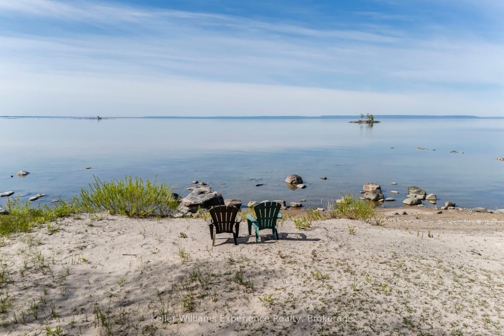 Rare South-Facing Waterfront Gem on Iconic Wahnekewening Beach. Welcome to a once-in-a-lifetime opportunity to cherish a piece of Georgian Bay's shoreline. Nestled on the exclusive and highly sought-after Wahnekewening Beach, this south-facing waterfront property offers 50 feet of pristine, sandy frontage with an exceptionally deep lot an ideal canvas for lakeside living. Positioned to capture both breathtaking sunrises and unforgettable sunsets, the southern exposure is among the most desirable orientations on the bay, offering all-day sunlight and warm, golden light filtering through every room. Whether you're sipping coffee at dawn or enjoying a twilight bonfire, this home invites you to embrace natures rhythm. Originally built in the 1940s and lovingly held in the same family for generations, this property is steeped in history. Like many on this stretch of beach, its part of an if you know, you know legacy rarely available and always treasured. Homes here are often passed down, not sold making this a truly rare find. The existing home features a solid poured concrete foundation, a newer well for reliable water supply, and a cozy gas fireplace to warm cool evenings. Whether you choose to refurbish the current structure or build your dream beach house, the possibilities are endless. This is your chance to create a private family retreat or year-round paradise in one of the region's most tightly held communities. Tucked away near the end of a quiet dead-end road, privacy and tranquility are naturally built into the landscape. Let the gentle waves be your soundtrack, the sand your backyard, and the views your ever-changing artwork.
