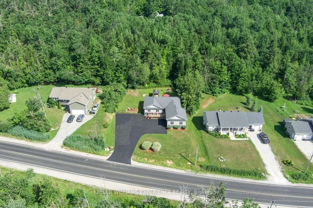 Welcome to this well-loved raised bungalow, constructed in 2016 and nestled in the peaceful, semi-rural community of Moonstone. Just minutes from the ski slopes of Mount St. Louis and surrounded by nature, this home offers the perfect blend of rural charm and modern convenience. Set on a private, treed 0.342-acre lot, the property boasts exceptional outdoor living with two spacious decks, a pergola, a Tiki bar, and an 8-person Arctic Spa hot tub (2021)ideal for year-round enjoyment and entertaining. The double garage provides 524 sq ft of functional space, while the newly paved driveway easily accommodates multiple vehicles and all your recreational toys. Inside, the bright and open-concept main floor features a stunning great room with a cozy gas fireplace and rustic mantel. This great room seamlessly connects the kitchen and dining area. The kitchen is truly the heart of the home, showcasing timeless shaker-style cabinetry, gleaming quartz countertops, stainless steel appliances, a new upright freezer, and a center island perfect for meal prep or casual gatherings. A large pantry adds convenience and ample storage. Thoughtful lighting, stylish fixtures, and a warm, welcoming layout make this home ideal for entertaining. The main-floor laundry room, with a sink, also functions as a mudroom, offering direct access to both the oversized built-in garage and the fully finished lower level. Downstairs, the finished walk-out basement features large look-out windows, a second fireplace in the family room, two generously sized bedrooms, and a full 4-piece bathroom perfect for guests or the teens. With the attached overhead projector & speakers, movie night will be memorable. With five bedrooms, three full bathrooms, and easy access to local schools, parks, and major city amenities (just 20 minutes away), this home has it all for ultimate family living. Whether you're an outdoor enthusiast or simply seeking a peaceful retreat, this Moonstone gem is not to be missed!
