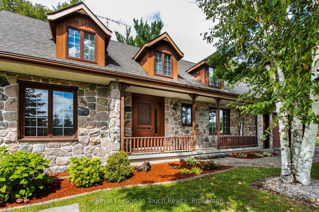 Welcome to your one-of-a-kind Georgian Bay escape. This charming fieldstone home, offered for sale for the first time, is a rare opportunity to own a property that beautifully blends character and comfort. The home's distinctive swooped eave and custom fieldstone facade are a nod to the timeless craftsmanship of traditional Quebecois architecture, a personal touch from the original French Canadian owners. Step inside and be greeted by the home's centerpiece: a graceful curved wooden staircase that adds warmth and timeless charm. Throughout the home, the quality and craftmanship are evident in the solid wood doors and trim. With over 3,300 sq ft, the layout is designed for family life. The main floor features a spacious family room with a floor to ceiling wood-burning fieldstone fireplace and a walkout to the back deck, creating a perfect hub for gatherings. Adjacent to the dining room, a sunroom offers a tranquil retreat. The main floor is designed with versatility in mind, featuring a second family room and a large bedroom with a walk-in closet. The upstairs level features three bedrooms, two bathrooms, and ample closet space. The expansive basement is a blank canvas, offering significant potential for a future renovation. Nestled on a 0.8-acre lot, this home offers the perfect balance of serene country living and convenience. The surrounding fields and treed ravine serve as constant reminders of your natural environment. The location is unparalleled, putting you within a short distance of three of Georgian Bay's best beaches: Cawaja, Wahnekewaning, & Concession 12 Beach. Essential amenities along the beach road and in the nearby towns, are just minutes away. The area is a four-season paradise, with endless opportunities for boating, golf, skiing, and exploring. Only 75 minutes from the GTA, this is more than just a home - it's your private gateway to a balanced lifestyle. Join the growing community of Tiny Township and find the lifestyle you've been searching for.