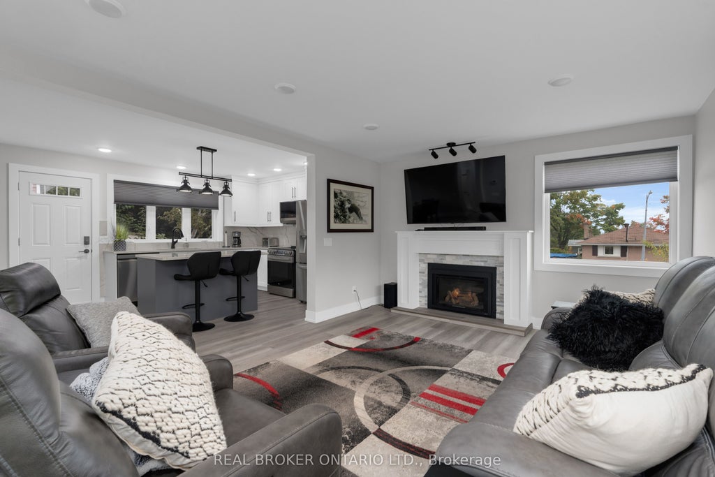 Gutted to the studs and completely renovated (finished July 2024) this corner home with two driveways shows pristinely on all 3-levels! As you approach the front deck (2024) you will be pleasantly surprised with this true pride of ownership of this home. Inside open concept kitchen, living, dining awaits with smooth ceilings, vinyl flooring, triple pane windows and a cozy gas fireplace. The kitchen has quartz countertops, stainless steel appliances, undermounted sink and an island (which has tons of drawer space). Walk out to the fully fenced yard with large deck, gazebo and dual gate (perfect to bring your boat in). Back inside two bedrooms and a 3-piece bath complete this level. Upstairs two additional bedrooms and another full bathroom (both bathrooms with stone countertops). To the lower level the bright open living space has smooth ceilings, pot lights and vinyl flooring. There is also laundry on this level and interior garage entrance (from the other driveway, with garage door opener). Furnace 2024. 2 minutes to the school, 2 minutes to the 9 hole golf course, 3 minutes to downtown, 3 minutes to the waterfront, 2 minutes to Hwy 11, and 5 minutes to all of your favourite box stores.