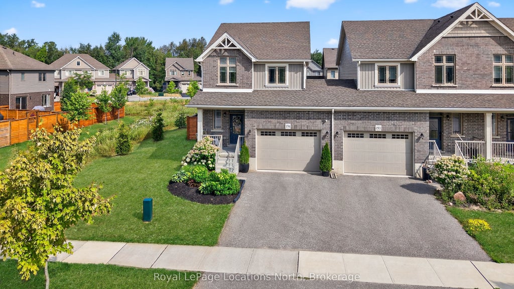 Welcome to 191 Collins Street, a stunning freehold end-unit townhome in the coveted Lockhaven neighbourhood that truly lives like a detached home. This spacious 3 bed, 3 1/2 bath residence, at 2,231 fully finished sq. ft., is open and bright with generous, usable space. The main floor offers an open-concept layout with soaring 9 ft ceilings and a cozy gas fireplace, while the chef's kitchen features custom cabinetry, granite counters, high-end stainless steel appliances, and brilliant storage, including a convenient corner glide-out system and pantry. Upstairs, the sophisticated primary suite enjoys a large walk-in closet and a 3-piece ensuite, complemented by an upper-level laundry room and generous closet space in the other two bright bedrooms. The fully finished lower level is highly functional, including an additional 3-piece bathroom, a beautiful wet bar with a wine fridge, and a built-in office workstation, making it ideal for guests, a family room, or a potential in-law suite. A generously sized single-car garage is perfect for additional storage. Outdoors, enjoy a private, fully fenced backyard with a shed to organize your yard tools and accessories. The home's exceptional location places your covered front porch directly across from Riverside Park (with its pond, swans, and ducks), playground and forested walking trails, and the adjacent open green space provides maximum privacy. For active living, the Collingwood trail network is steps away, granting direct access for leisurely walks, running, cycling, fishing, and walking to downtown's farmers' market, shops, and restaurants, with Admiral Elementary, Our Lady of the Bay and CCI High Schools an easy walk away, and short drives to Blue Mountain and golf courses. This beautiful property is a perfect blend of modern convenience, nature, community, peace, and unparalleled active living.