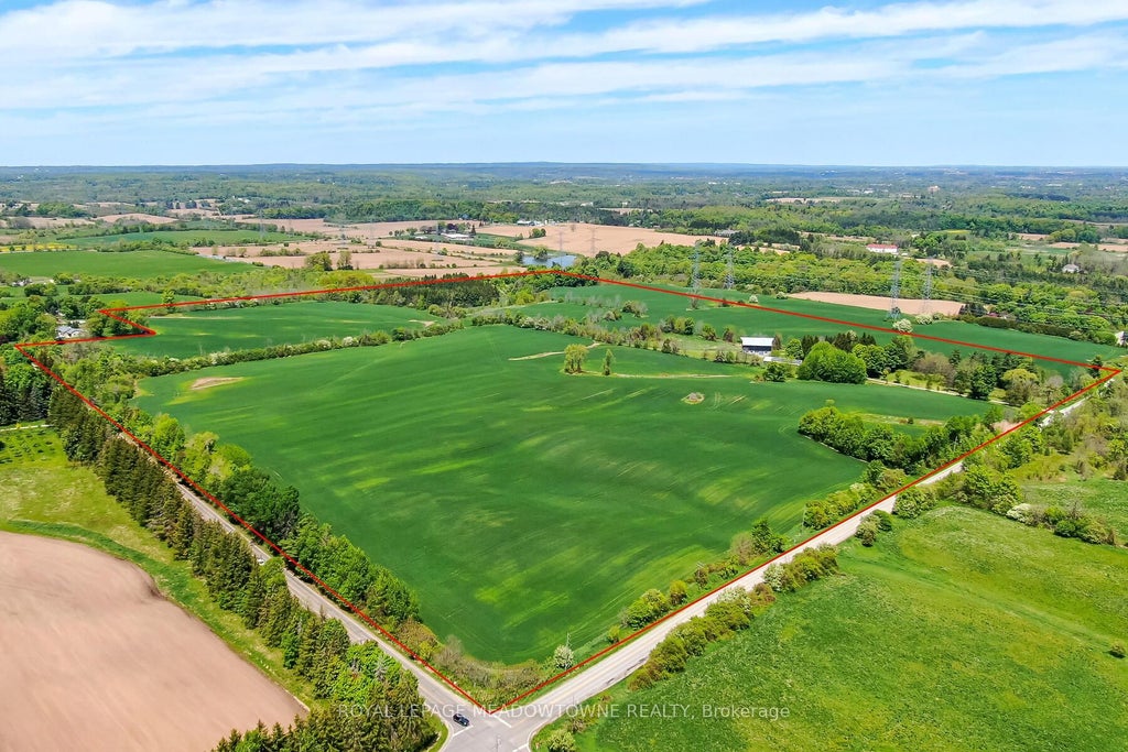 Picture perfect setting on 84+ beautiful acres in the heart of Halton Hills Country! Fabulous tree-lined drive and professionally landscaped gardens welcome you to this gorgeous century home in mint condition and completely updated with lovely country views from every window, spectacular stone studio with tons of charm and incredible barn plus a 5-bay driveshed. Versatile living space. The stone house can be used for an office, teenagers getaway, inlaw suite and so much more. Stunning open concept kitchen with quartz counters, breakfast bar, stainless steel appliances open to a sitting room with gas stove, formal living room w/cozy wood burning fireplace (with WETT compliance certificate), pretty dining room, primary suite with walk-in closet and luxurious ensuite, spacious three-season room boasting country views and tons of storage in the basement. The formal living room could work as a main floor bedroom ideal for an elderly family member making it a three bedroom home. Heated floors at entrance, hardwood flooring, main floor laundry, updated plumbing and electrical, skylights, pot lighting, wainscotting & more. Tastefully designed keeping all the charming character but with modern conveniences. Forced air gas heating - a rare find in the country! Also includes solar panels. Approx 65 acres farmed. Prime location centrally located close to Georgetown, Milton and Acton and minutes to the 401 & the GO. It's the perfect country package!