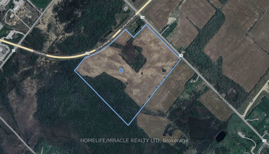 86.47 Acres Prime Development Land in Caledon Location: Dufferin Road 109 & Porterfield Road, Caledon, ON A rare and exceptional opportunity to acquire 86.47 acres of strategically located land in Caledon- one of the fastest-growing regions of the Greater Toronto Area. Situated outside the Greenbelt, Oak Ridges Moraine, and Niagara Escarpment, this property offers a streamlined path to future development. With massive frontage on Dufferin Road 109, excellent visibility, and strong connectivity, it's ideally positioned for long-term growth and appreciation. Property Highlights: Size: 86.47 acres, Frontage: Significant exposure on Dufferin Road 109, Location Advantage: Outside Greenbelt, Oak Ridges Moraine, and Niagara Escarpment, Zoning Potential: Ideal for future development, Investment Appeal: Perfect for developers, investors, or strategic land bankers With high demand for development land in the GTA and limited availability outside restricted zones, this property represents a premium acquisition opportunity in a prime growth corridor.