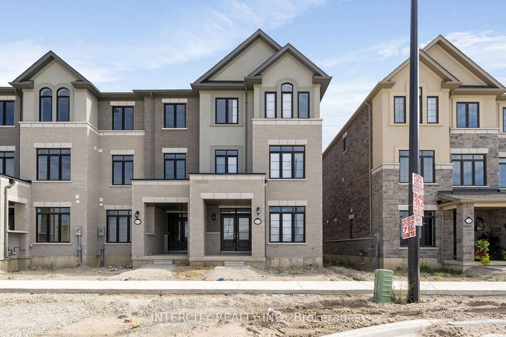 The Bright Side, Mayfield Community Stunning end-unit townhouse offering 3 bedrooms, 3.5 bathrooms, and 2051 sq. ft. of sun-filled living space. This brand-new, never-lived-in home combines style and functionality with upgraded hardwood on the main level and upper hallway, stained stairs with metal pickets, and extended-height kitchen cabinets. Enjoy outdoor living with a massive 20.9 x 18.6 ft composite deck off the living room and a private deck off the primary bedroom. The versatile den with a closet can easily serve as a 4th bedroom or home office. Parking is never an issue with a double car garage plus driveway space for 2 additional vehicles 4 car parking total. Modern features include a 200 amp electrical panel and roughed-in EV charging system. Located close to all amenities, this super spacious townhouse offers comfort, convenience, and elegance in the highly sought-after Mayfield Community.
