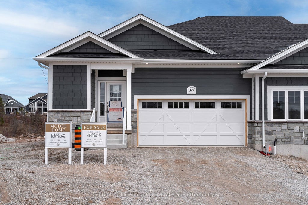 Newly built, move-in ready- can close immediately. New FREEHOLD (Common Element) Townhome. Come live in Cobble Beach, Georgian Bay's Extraordinary Golf Resort Community. This Grove (end unit) bungalow is 1,215 sq ft 2 bed 2 bath and backs on to green space. Open concept Kitchen, dining, great room offers engineered hardwood, granite counters and an appliance package. Primary bedroom is spacious and complete with ensuite. Lower level is unfinished and can be finished by the builder to add an additional approx 1,000 sq ft of space. 2 car garage, asphalt driveway and sodding comes with your purchase. One primary initiation to the golf course is included in the purchase of the home. All of this and you are steps to the golf course, beach, trails, pool, gym, US Open style tennis courts, and all the other amazing amenities. Cobble Beach is all about LIFESTYLE, you'll be amazed.