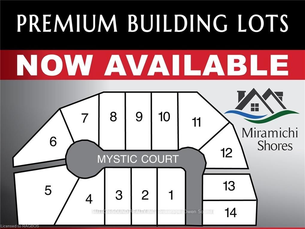 Steps away from the shores of Lake Huron in one of Saugeen Shores’ most Prestigious Neighborhoods Miramichi Shores offering premium estate sized residential building lots. This exceptionally planned design including Architectural Controls and Tree Retention Plan establishes a pleasurable opportunity to build you new home at this Cul de Sac location with only 12 Lots available serviced with Natural Gas, Municipal Water and Fibre Optics at lot line. Savor the sights of Lake Huron via paved trail extending between the Towns of Southampton and Port Elgin excellent for cycling, jogging, or sunset walks. Enjoy watersport activities and sand beaches or indulge in the tranquility of some of the most remarkable trail systems while hiking, snowshoeing, or skiing all proximate to Miramichi Shores. Miramichi Shores invites you to share in the enjoyment of an exquisite neighborhood of large estate style properties.