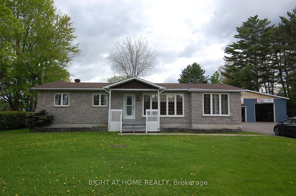 35 minutes east of Ottawa and just 5 minutes East of Rockland this home offers a stone facade and brick all around which is a bonus for sound proofing. The home offers 3 bedroom bungalow, 1 1/2 bathroom and a recently renovated fully finish basement, and a gas fireplace . There is lots of space. Also the property includes a 21ft X 20ft storage garage on slab, additionall 15ft X 20 Ft addition on grade, a 20ft X 10 ft Tempo (as is ). Also Included a Commercial Automotive Garage Business (Garage Labreche)that as been in businees for 50 + years , which includes a 3 bay garages, Equipments , Financial Books( with a Conditional Offer) Contact Listing Agent for further info .