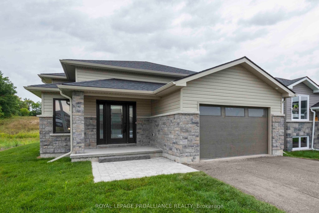 To be-built raised bungalow, ready for 2025 closing! Three bedrooms, 2 baths, open concept living/dining/kitchen. Kitchen features island with seating area, and pantry. Master suite boasts walk-in closet, and private ensuite. Other popular features include main floor laundry room, vaulted ceiling, forced air natural gas furnace, air exchanger for healthy living. Carpet free through out. Exterior complete with deck from large patio doors, attached garage with inside entry, sodded, paved driveway, walk way. Lower level awaits your finish or leave as storage. Situated on a quiet street with a park, and walking trail and ATV trail nearby. 15 minutes or less to 401, Trenton, and YMCA.
