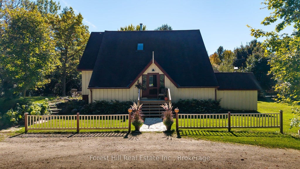 Welcome to an extraordinary opportunity to own a magnificent 27-acre country estate, perfectly positioned less than five minutes from Thornbury. From the moment you enter the long, tree-lined driveway, you are greeted by an ambiance of elegance and tranquility that sets the stage for the remarkable home awaiting you. This stunning four-bedroom country residence is bathed in natural light, with every window framing views of the lush property, creating an atmosphere that is both inviting and inspiring. The interior features an open, flowing layout where a custom kitchen with its generous island serves as the heart of the home, ideal for hosting family gatherings and entertaining guests while enjoying the warmth of everyday moments. Outside, an impressive 1,800-square-foot garage, workshop, and commercial space offers endless possibilities, whether your pursuing a home-based business or simply in need of abundant storage and creative space. At the centre of the estate lies a dedicated seven-acre horse facility, meticulously designed to accommodate equestrian pursuits. Here, multiple paddocks, well-appointed stalls, and sturdy barns surround a professionally installed 70x110 riding ring, creating a complete and functional environment for horse enthusiasts. The rear of the property reveals a serene mature maple bush that unfolds into an extensive trail network leading to a charming Bunkie an ideal retreat for summer guests or a quiet escape from the day-to-day. With convenient access to local amenities including ski areas and golf courses, coupled with the practicality of natural gas at the road and subsidized tax rates under the Ontario Managed Forest Program, this estate presents an unparalleled blend of rural charm and modern convenience. Don't miss this once in a lifetime opportunity to own your own country estate. Schedule your private viewing today and discover the beauty and potential of this remarkable property.