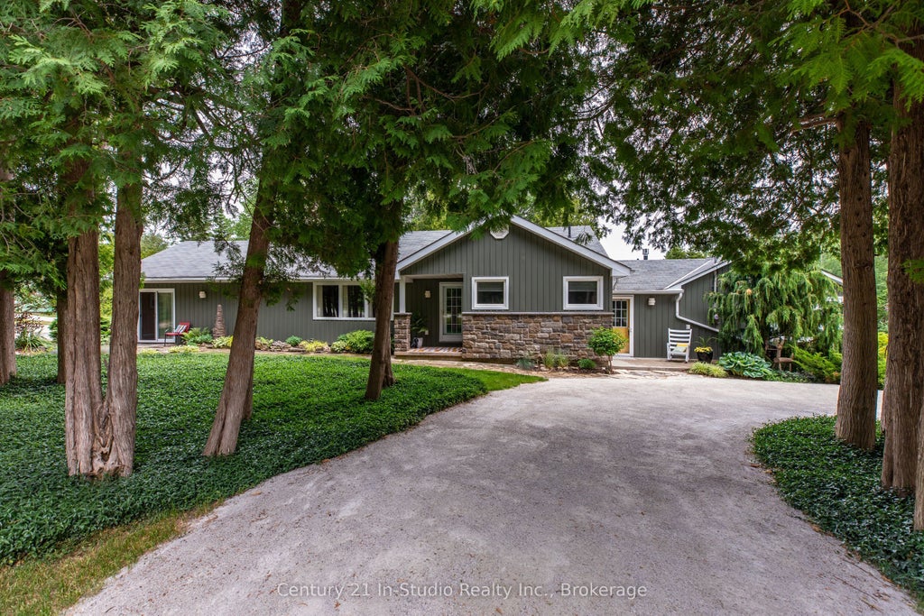 Welcome to this exceptional property that offers not only a charming 4-bedroom, 2-bathroom bungalow but also a lucrative marine storage and repair business. Located in a tranquil neighborhood, this versatile property presents an ideal opportunity for both residential living and entrepreneurial ventures. Closeby Black Creek Provincial Park (Big Sandy Beach) and only a few minutes from Lion's Head, you can enjoy the amenities of town and the warm waters of Lake Huron. The bungalow itself exudes warmth and comfort, boasting a single-level layout that provides convenience and accessibility. With four spacious bedrooms, there's ample room for a growing family or the potential to convert one into a home gym or hobby space. The two living areas are bright and spacious, perfect for entertaining or relaxation. There is also a sizable dedicated office space with a separate entrance for your business needs, designed to enhance productivity and professionalism. The front of the property surrounding the house is beautifully adorned with easy-to-maintain gardens, a serene pond, and a charming gazebo to enjoy your afternoon tea. However, the true standout feature of this property lies in its marine storage and repair facilities. Three expansive storage buildings, measuring 64' x 40', 80' x 40', and a staggering 244' x 40', provide abundant space to store boats, equipment, and supplies. Whether you're an avid boater looking for secure storage or an entrepreneur seeking income opportunities, this setup is perfect for your needs. Call your REALTOR today!