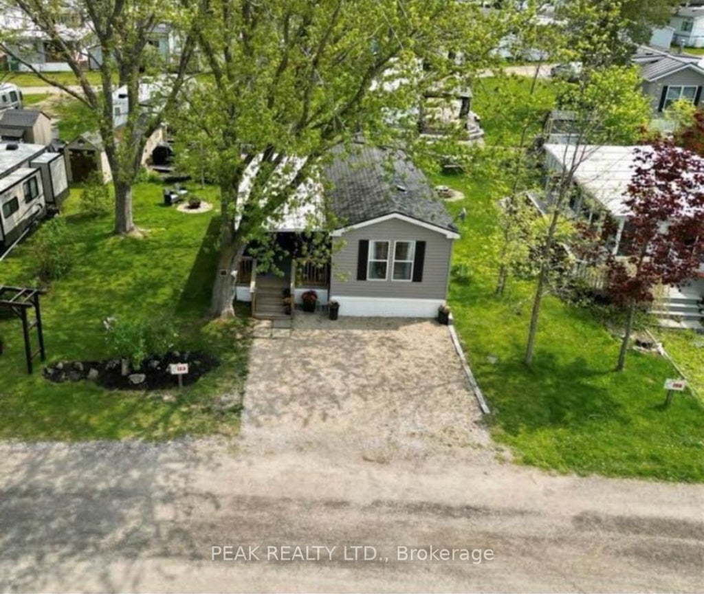 This Open Concept, 2 bedroom Park Model-mobile home is located in a land lease community that offers 10 month seasonal accommodation. Perfect for Snowbirds looking to head south for January/February. Also ideal for young couples saving for a home who want their own space without renting. This particular unit is MOVE-IN-READY and is low maintenance. It has a warm cottage feel and is tastefully decorated. The kitchen is crisp and bright with white cabinetry, black appliances, updated hardware and newer quartz counter tops (2022). It has an island with bar stools and is open to the cozy living room with electric fireplace and laminate flooring throughout. There is a bedroom at both the front that could be used as an office, or hobby room and a bedroom at the rear with closet and close access to the 3 pc bath with walk in shower with surround. The sunporch area can be used as an additional sitting room, laundry room and/or storage/mud room. It has sliders to both the rear yard and patio as well as the front covered deck. There is parking for 2 vehicles and a generously sized side yard where you can enjoy your summer and fall nights sitting by the fire. There is also a large garden shed for all your additional storage needs whether it be garden tools or winter tire storage etc. This terrific move-in-ready home is located close to the city in a beautiful friendly park that is a clean, well maintained, well managed recreational park that offers 10 month living. It includes a pool, hot tubs, recreational hall, picnic areas, koi pond, catch and release pond, playgrounds, pickle ball courts and many fun activities & events to enjoy. Located within minutes of St. Jacob's Farmer's Market, North Waterloo and the amenities it has to offer.