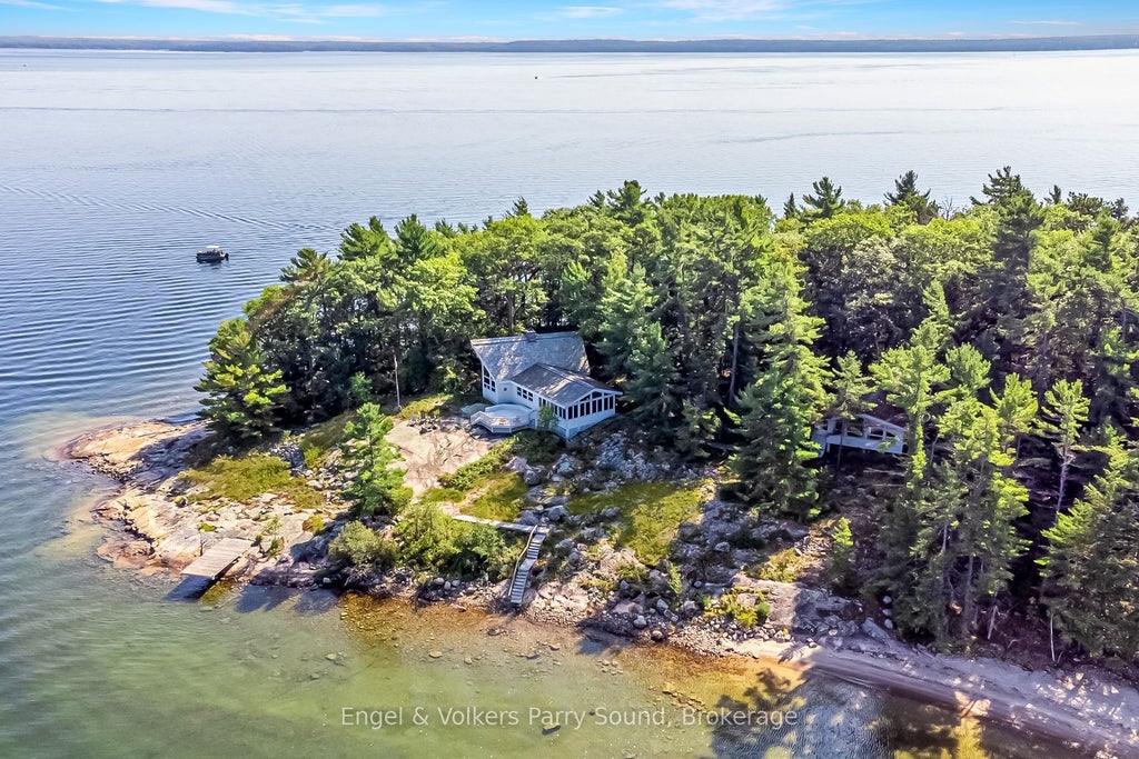Welcome to Invernairn on Georgian Bay. The property consists of almost 12 acres and approximately 2,500 feet of shoreline on Georgian Bay forming the southern peninsula of highly coveted Mowat Island. Built by locally renowned builder Ron Bowman, the family compound features a 4-bedroom main cottage and 3-bedroom guest house both with jaw dropping views overlooking the quiet eastern shoreline of Huckleberry Island including the notable landmark, Hole in the Wall and both on their own septic systems. The main cottage features an open concept with vaulted ceilings and large windows allowing for an abundance of natural light. The centre of the cottage is anchored by a massive floor to ceiling wood burning fireplace constructed from locally quarried granite. Off of the kitchen is a screened sun porch with remarkable views and is a favourite gathering place in the summer - large enough to accommodate family & friends. A wooden boardwalk provides connectivity between the main house and guest house while still allowing for ultimate privacy. The property is heavily treed largely with Jack Pine, Oak and Hemlock. There is a Forest Management Agreement in place on the property thereby assuring significant tax relief. The lush vegetation supports a vibrant bird population, as well as fox and deer. Well groomed trails throughout the property offer opportunities for walking and hiking. A golf cart is employed to transport luggage and supplies from the harbour to the cottages. The property also features a long protected sandy beach, perfect for children and rarely found on Georgian Bay. Mowat Island has tremendous history and was originally home to a grand Georgian Bay Hotel operating during the late 1800's in the peak of passenger steamships. Now the property is spotted from large cruise ships sailing the Great Lakes & beyond.