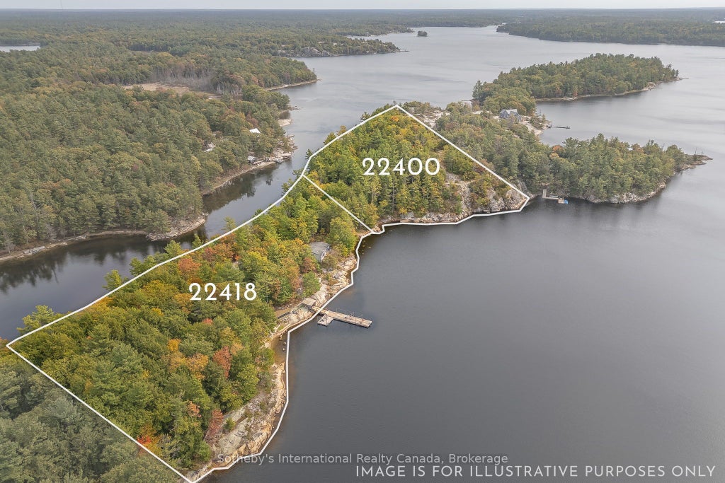 Amazing Development Opportunity to build a family compound with the ultimate privacy on Georgian Bay in the highly coveted Longuissa Bay. The property is boat access only and boasts stunning granite formations, mature pine trees, a perfect blend of natural beauty and tranquility that makes it all a dream come true. Featuring: Two separately deeded lots on a Peninsula with a total of over 2000 feet of waterfront on 5.8 acres. Enjoy both Sunrise and Sunsets with water on both sides, west facing Georgian Bay and East - Musquash River. There is a 900 sq. ft. Panabode 3 bedroom cottage with its own beautiful sandy beach and waterfall pump so water flows down the rocks to the Lake. Relax in the hot tub and enjoy parties around the Tiki Hut and firepit by the waterfront. Lots of storage space at shore and a large Quonset shed for toys at the back. The boat dock is extra long, at 60' and can handle a large yacht with its 30 ft. depth at the end - and a 12' wide is great for relaxing or entertaining at. There is also a secondary 18' x 13' swim dock. The infrastructure was upgraded, with 400 amp service (200 amp at dock), one 50 amp and three 30 amp hubble plugs. A Boaters' Dream!! The vacant lot next door has 958 ft. of combined waterfront and amazing views with west exposure. There is a perfect spot to build a secondary cottage with its own beach and docks next door. The highlight of this property is the 2 km of scenic walking paths that weave through the forest with extra wide trails that allow you to even ride a 4 wheeler. Kids love the property. Must be seen to appreciate the natural beauty and privacy. Boat taxi arrangements from Honey Harbour.