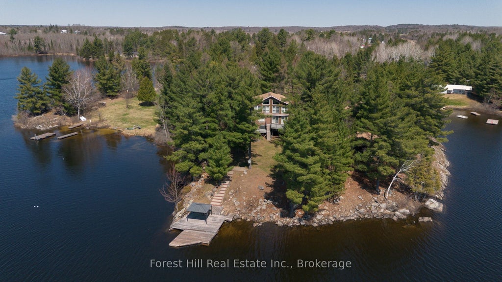 This is a rare opportunity to own a stunning year-round home or cottage on a scenic and beautifully treed lot situated on a private peninsula, offering 562 feet of water frontage and breathtaking panoramic views. The property provides year-round access and endless potential, whether for personal enjoyment or as an investment. Enjoy the longest and most captivating view on the entire lake, with southwest exposure that ensures spectacular sunsets from multiple vantage points throughout the property. The main residence is complemented by a detached 3-car garage (36' x 24') with a wood-burning stove and an unfinished upper level, providing future development opportunities. A charming log guest house adds rustic appeal and includes a lakeside covered deck to enjoy the serene views. A boathouse further enhances the property, offering convenience for water activities. This exceptional property is ideal for a Bed & Breakfast, Airbnb, in-law suite, or a family compound. With expansive living spaces and a versatile layout, its perfect for both large family gatherings and business ventures. Located at the end of a quiet cul-de-sac, the home offers privacy and tranquility.Seagull Lake is renowned for its depth and excellent fishing, with trophy walleye, pike, and bass, making it a paradise for anglers.Inside, you'll find spacious rooms that are perfect for both relaxation and entertainment. A dedicated 27' x 15' games room, complete with a pool table and air hockey table, provides plenty of fun. Outdoors, multiple decks overlook the lake and grounds, providing ample opportunities to enjoy the natural beauty. In winter, hop on the nearby snowmobile trails directly from Seagull Lake, adding to the year-round enjoyment of this incredible retreat. This property offers the perfect balance of serenity, adventure, and investment potential.