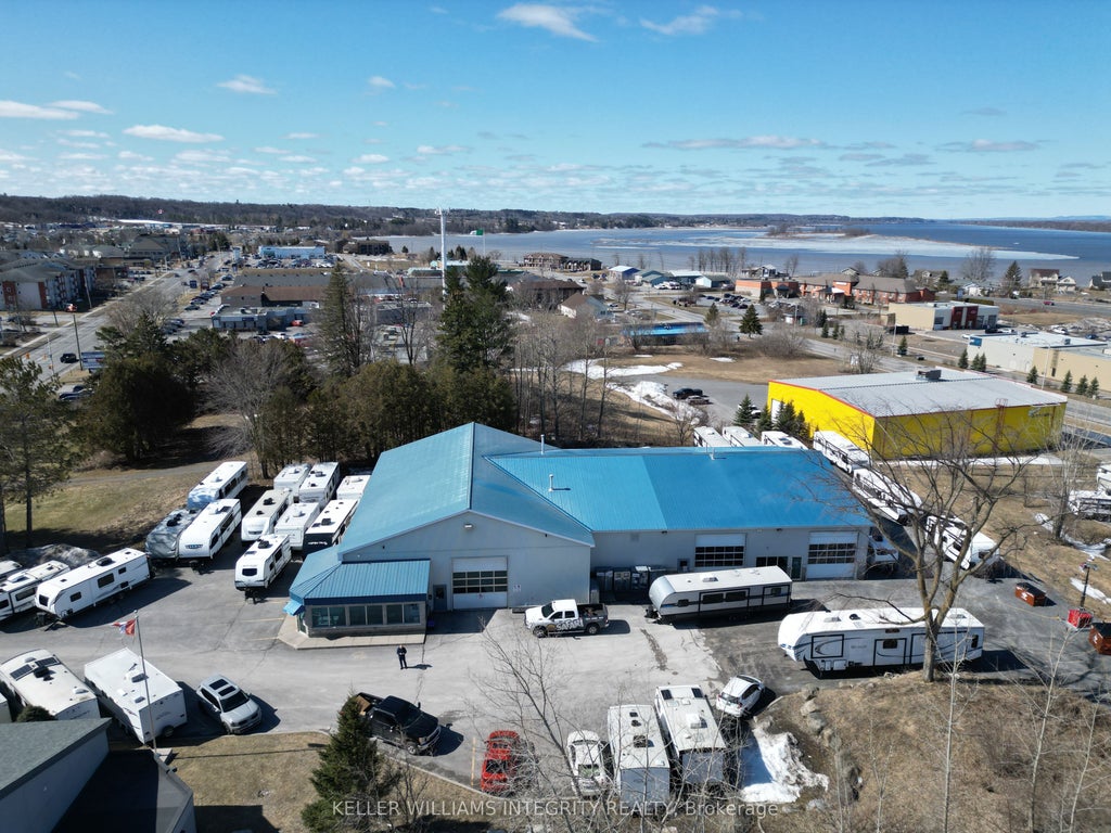 Great for any industrial use, RV, truck, auto sales and service, or retail. Situated next to Home Hardware on the main retail street in Rockland. Currently operating as an RV repair shop and sales centre. Vacant possession available, or can be purchased with a quality tenant in place for an investor. The building features 3 large bays each with drive-in and drive-out 14 feet high roll-up doors. A total of 10,791 square feet inclusive of the ground floor area (10,196 sf) and mezzanine (595 sf). Ground floor has a reception office with air conditioning, three bays, and interior offices. Plenty of power with 400 amp 600 volt service distributed to sub-panels in each bay. Two suspended forced-are gas heaters in each bay. Access to highway 174. Proximity to other major retail and automotive dealers. Rare opportunity to acquire a facility designed for large vehicles. Ceiling height is 15 "6" clear. Sizeable lot with ample parking. A phase 2 environmental report concludes the site is within the ministry of environment's acceptable standards. Lovely view of the Ottawa river as the property sits above highway 174. Building was constructed in 1998 and expanded in 2000 and 2007. Very clean and well-kept.