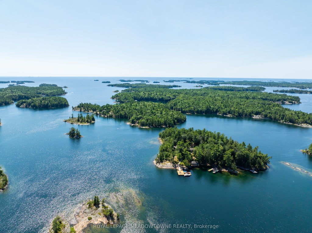 Stunning Sans Souci Cottage Compound on private 4.5 acre White Pigeon Island; Designed by Stark Ireland Architects, Constructed by Rose Point Contracting; The 5-bedroom Timber Frame Main Cottage features a gracious Great Room, with state of the art open kitchen, and generous dining and living areas anchored by a floor to ceiling stone fireplace; Floor to ceiling windows wrap the great room revealing sweeping water views. In classic Georgian Bay style, Screened Porch, Master suite and bedrooms are housed in separate private pods of the cottage. A one-bedroom guest cottage removed from the main overlooks its own bay; Separate Gym; Large Dry Boat House; protected dockage in three locations; main dock entertaining area; ; Extensive landscaping and perennial gardens, Groomed trails throughout; Natural Sand Beaches and a Charming Tree House/Children's Hideaway. One of Sans Souci's most Charming Turnkey Island Properties. Ideally located close to Frying Pan Island's Marina/Conveniences, the SSCA HQ offering Children's Camp.pickle ball, Tennis camp. 20 Min. by boat from full service PS Marinas.