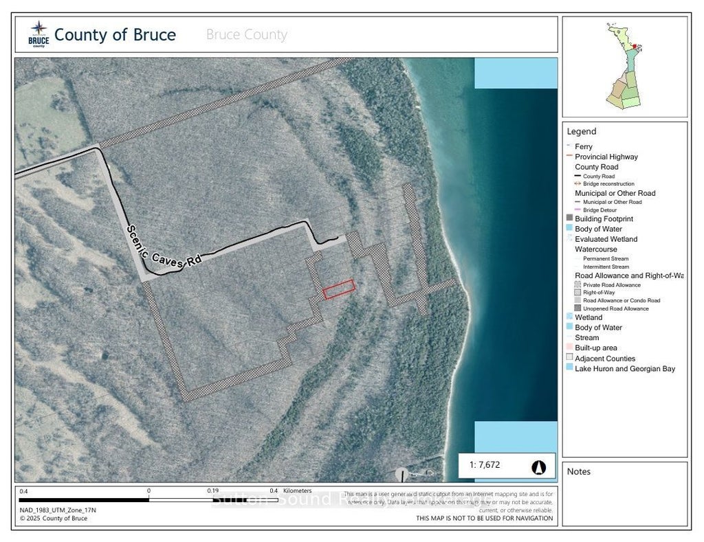 BREATHTAKING WATER VIEW!!! Discover your private slice of nature with this spacious 95ft x 300ft vacant lot, perfectly situated near the breathtaking Greg's Caves and Bruce Trail. Nestled in a quiet and scenic area, this DC-zoned property offers an exceptional opportunity for recreational use only - ideal for nature lovers or outdoor adventurers looking for a peaceful escape. This parcel has a fabulous seasonal water view through the trees from atop the cliffs. Enjoy proximity to Georgian Bay, with a nearby trail leading down to the shoreline for serene hikes, picnics, or wildlife spotting. Access to the property is via a municipal road allowance - partially opened and partially unopened - offering a secluded feel with a sense of adventure. This unique parcel is perfect for those seeking a rustic retreat in the heart of Ontario's natural beauty. **NOTE**: This is an UNBUILDABLE recreational lot with no services. Buyers must conduct their own due diligence regarding zoning and permitted uses. Northern Bruce Peninsula does not permit camping on vacant land as per their BY-LAW NO. 2018-66. Taxes $30.16. Feel free to contact the municipality at 519-793-3522 ext 226. Please reference Roll Number: 410962000912742.