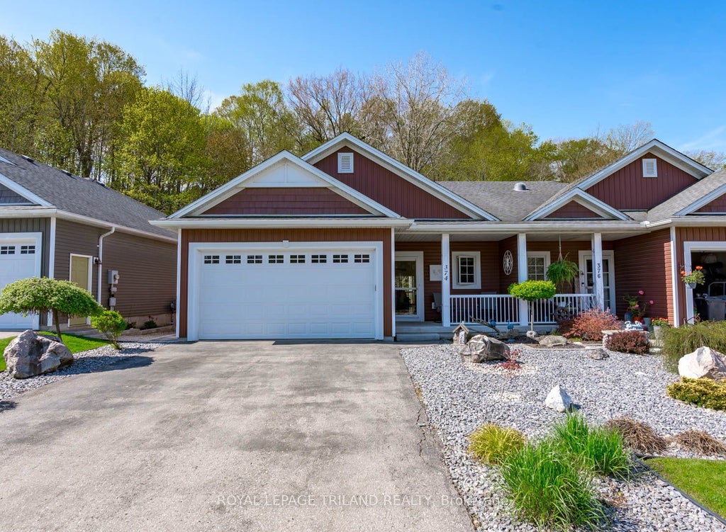 Welcome to 374 George Street. Located in the lovely Village of Port Stanley just minutes away from delightful shops, amazing dining, gourmet restaurants and pristine beaches!! This immaculate Semi- Detached Bungalow with a 1.5 car attached garage is an inviting home for retirees or those looking to downsize. The main level features an open concept with a kitchen with granite countertops, ceramic backsplash, a moveable island, dining area (vaulted ceilings), living room ( vaulted ceilings) with a gas fireplace, patio doors to a large deck with a hot tub ("AS IS" Condition). Private backyard with a shed and backing up to a wooded area. The main level also offers a primary bedroom with a 3PC Ensuite and a walk-in closet, second bedroom, laundry area and a 4 PC bathroom. Moving to the lower which boasts a generous rec-room, bedroom, 3PC bathroom and a large storage area. This amazing home is a must to see!