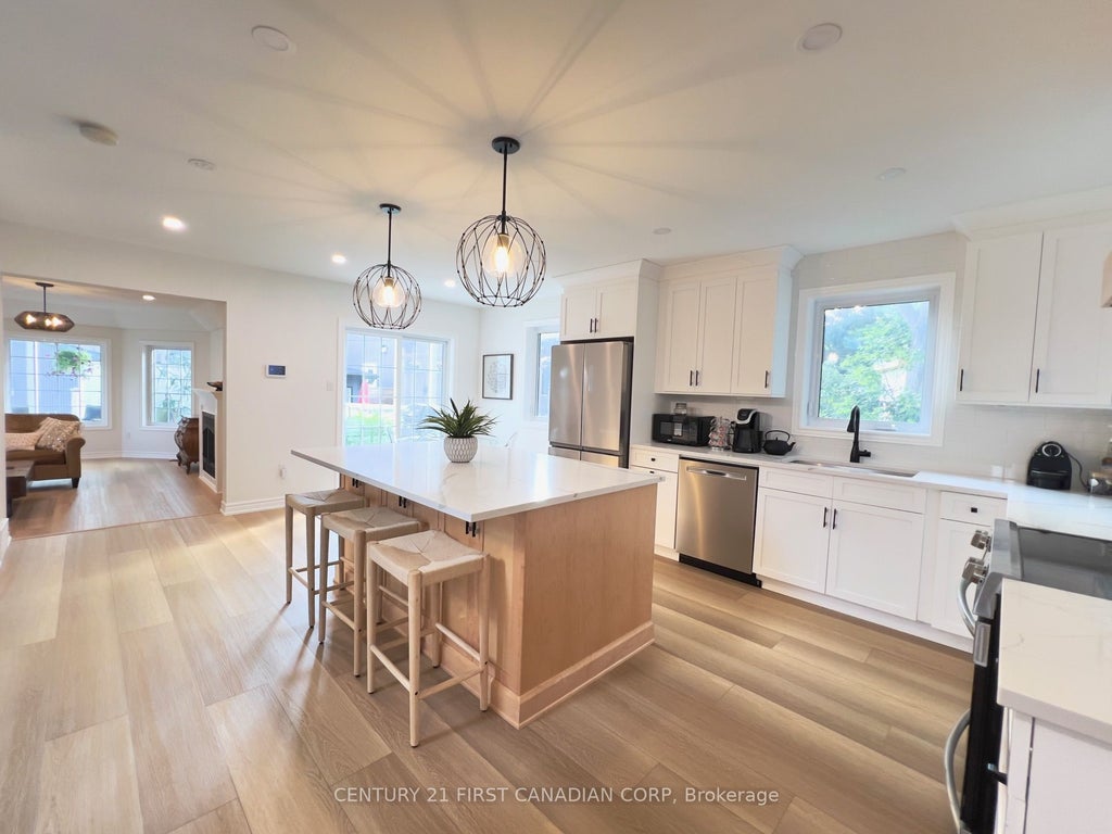 Enjoy breathtaking views from this beautifully designed, extensively updated, 3 bedrooms, 2 dens, 3.5 full bath home, with just steps from the lake. Looking onto a scenic ravine, with water views, this turnkey property offers low maintenance living surrounded by natural beauty and privacy. The inviting living room features a soaring vaulted ceiling, cozy gas fireplace, and walkout to a private deck with its own outdoor fireplace. Sun-filled windows from three sides brighten the space, while new frosted glass railings add modern elegance. The primary suite offers a private deck with a spa-like ensuite featuring a gorgeous soaker tub, and gentle breezes from the lake. Two additional guest bedrooms and a stylish 4pc bath complete the upper level. The lower level is made for entertaining, with a spacious family room, games area, and versatile flex space for a den, gym, or office plus a full 3pc bath. Perfect for gatherings, movie nights, or relaxing weekends by the water. Gather the family and make lifelong memories, or set the home up as an income property and benefit from all this has to offer. The possibilities are endless! Come see yourself here!