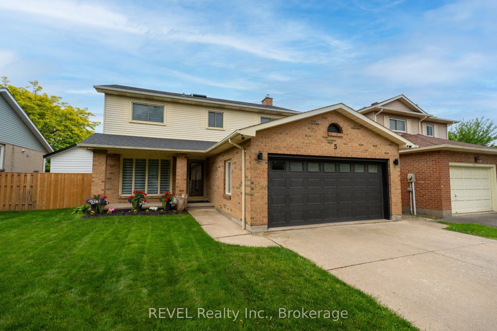 Welcome to your dream home in St. Catharines' Grapeview area! This stunning 2-storey home with over 2000 sqft of finished living space provides modern comfort and style throughout. The open concept kitchen, boasts a fully renovated space featuring a 9.5ft island, stainless steel appliances, pot lights, and elegant quartz countertops. Relax in the living room by the electric fireplace set against a shiplap accent wall with patio doors to the rear yard, perfect for cozy evenings. The main floor also offers convenience with a 2-piece bathroom and a combined laundry/mudroom area. Upstairs, you'll find three generously sized bedrooms complemented by a full 4-piece main bathroom. The spacious master bedroom includes a walk-in closet and a private 3-piece ensuite for your ultimate relaxation. Newer laminate and carpet flooring flow throughout the home, providing both durability and comfort. Additional upgrades include exterior pot lights, new main floor doors and knobs, AC, Including a fully finished basement with a large rec room, new rear concrete pad, new gas BBQ line, new utility shed, and new fully turfed yard, there's ample space for every family activity. Located close to all amenities and with easy highway access, this home combines convenience with suburban tranquility. Don't miss the opportunity to make this meticulously renovated home yours!