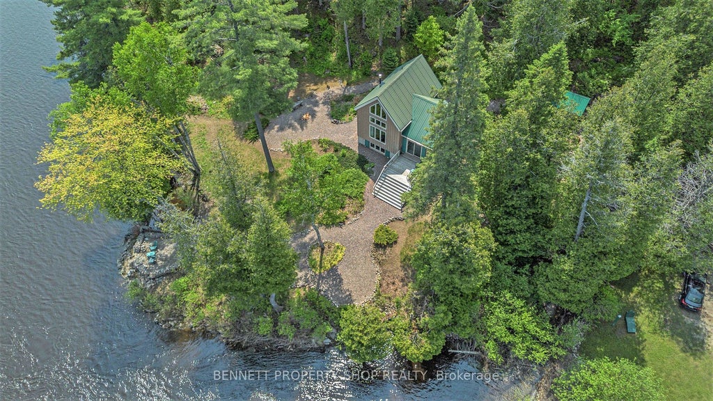 Idyllic Post and Beam Waterfront Cottage on the Ottawa River - a fairytale-like property nestled on 5.37 private, forested acres with an impressive 426 feet of pristine water frontage. Built in 1998 by renowned builder Normerica, this post and beam cottage-style home blends timeless craftsmanship with comfort and charm, offering an affordable opportunity to enjoy the waterfront lifestyle in a setting that feels worlds away. The cottage features up to five bedrooms and showcases hardwood flooring throughout completely carpet-free for easy maintenance and a clean, natural aesthetic. A spacious family room with an efficient propane stove/fireplace provides a cozy heart to the home, while a rear deck offers the perfect space to unwind or entertain amid the sights and sounds of surrounding nature. Outside, you'll find a gently flowing stream with a waterfall and covered bridge that adds to the serene, storybook atmosphere. The property is very well forested with mature trees, creating a private sanctuary rich with wildlife and natural beauty. A well-kept shed provides additional storage, and thoughtful upgrades such as a generator link, central vacuum, sump pump with battery backup, drilled well, and a reliable septic system ensure peace of mind. Pride of ownership is evident throughout this neat and tidy property. Could be turn-key as the furniture is negotiable, making it easy to move right in and begin enjoying all this special property has to offer. Property is accessible by Rex Lane and Burton Lane - both private roads not plowed in the Winter. For that reason, the property is Seasonal Access only. Whether you're looking for a quiet retreat, a family cottage, or a place to build lifelong memories, this riverfront haven is a rare and exceptional find.