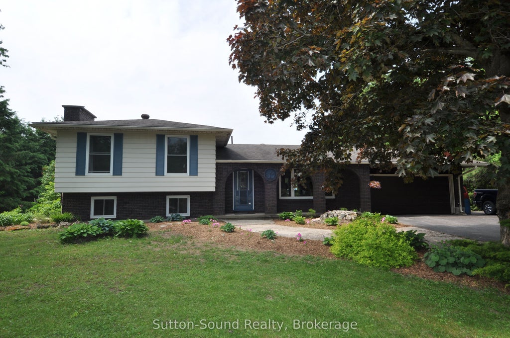 Welcome to this charming 4-level side-split home nestled on 1.25 acres of private, park-like grounds, bird paradise (over 20 kinds of birds) centrally located between Owen Sound and Sauble Beach. Surrounded by mature trees and featuring beautifully landscaped perennial gardens, a large vegetable garden, and even a chicken coop, this property offers the perfect blend of nature and comfort. Enjoy summer days lounging by the sparkling in-ground pool or entertaining on the spacious deck just off the main living area, accessible through patio doors. Inside, the home boasts a bright and airy main level, a second level with three comfortable bedrooms and a 4-piece bath, and a lower level with a cozy family room featuring a gas fireplace, a 3-piece bath, and a laundry room. The basement offers a versatile open space ideal for a kids play area, home gym, or games room, complete with a cold storage room. The home is efficiently heated with natural gas and cooled by central air conditioning. Additional features include a 1.5-car garage, a separate workshop, House trailer is great for overflow visitors,  and a bunkie perfect for guests or creative pursuits. A rare opportunity to own a well-rounded property in a serene and scenic setting.(Please do not touch the collectible toys) Gas 1364 Furnace, Gas BBQ, GAS heater in Garage, Gas Fireplace, Gas Clothes Dryer, Gas HWT,  Hydro 1965 Water tests 0/0 uv light not connected. Roof 2016, Furnace 2025, a/c is older but works great. Gas Fireplace 2018,Well off the front porch to the Left (churchside)