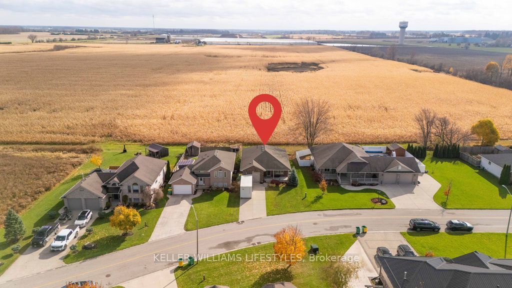 You have to see this well kept bungalow, built in 2014 that's tucked away on a quiet dead-end street in Glencoe. Enjoy the best of both worlds with in town convenience and peaceful views of open farmland out back. The main floor offers a bright living room that flows into a spacious eat in kitchen with plenty of cupboard space and access to a covered composite deck, great for relaxing or entertaining. You'll also find a built in office nook, main floor laundry, a 4 piece bathroom, the primary bedroom with walk in closet, and a second bedroom. Hardwood floors and California shutters add a polished touch. The finished basement includes a large family room, an extra bedroom, and a 3 piece bathroom with walk in shower, perfect for guests or additional living space. The fenced portion of the yard offers a safe spot for kids or pets, with even more room beyond. A comfortable home in a friendly community, close to everything you need.