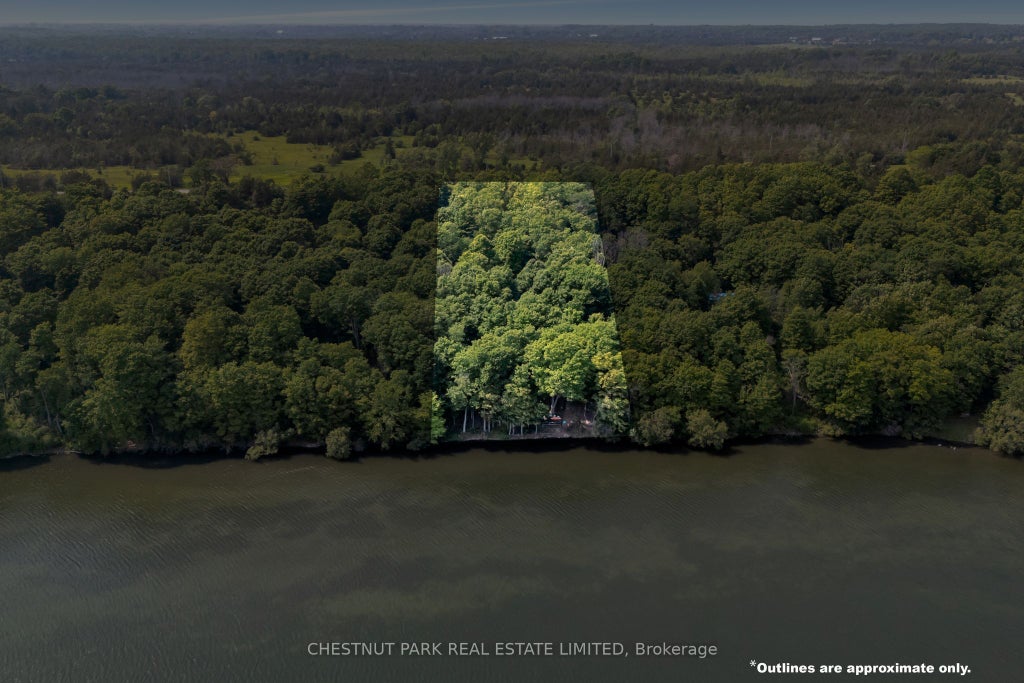 Tucked into a wooded rise above the waters of Smiths Bay, this 1.9-acre retreat offers 150 feet of waterfront framed by mature hardwood forest. A rare natural canvas in The County, the property unfolds with character, its elevated position granting privacy and the discovery of spectacular water vistas, while a stone stairway winds gently down to the shoreline. At the waters edge, a wooden deck floats amidst the trees, inviting morning coffee with birdsong or long summer evenings under the stars. A character-rich bunkie, with its steep roofline and gabled windows, anchors the setting with both whimsy and possibility. It provides immediate comfort and a charming placeholder while you envision a future build, whether a contemporary lake house or a refined lakeside escape. The sites natural topography offers intuitive siting for a primary residence with seamless indoor-outdoor flow. Kayaks and water toys rest ready and safely at a dockside in this location, hinting at the simple rhythms of life here, launching into calm waters, sunset paddles, and fireside wine. Private, quiet, and alive with potential, this is the sort of land that reveals its magic slowly. Let something remarkable begin.