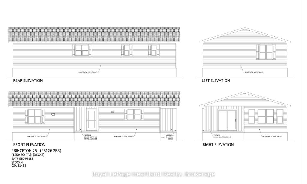 Live and enjoy the pristine 12 month Bayfield Pines 55+ community, just 5 minutes from Bayfield! The BRAND NEW (currently being built) manufactured home sits on a massive 150 x 100' treed lot with lots of room for a garage or shed. Comes fully complete with many upgrades on this 2+1 bedroom "Made in Canada" General Coach Home named as the "Princeton". Thoughtful floorplan with open concept living/kitchen/dining area open to covered patio. Primary bedroom has 4pc ensuite bathroom and walking closet. There is an additional 4pc bathroom for the family or guests. Large sunroom gives lots of extra space and could easily be another bedroom or den. Bayfield Pines is a quiet, well-kept community on 135 acres in a parklike setting with trails meandering the towering pines and to the Bayfield River. This is a 12 month residential community. A place to relax but also take advantage of planned activities and the beautiful recreation hall. Being 5 minutes from Bayfield and its amenities has major benefits. Bayfield hosts gorgeous beaches, dining establishments, marina, shopping and more. Within 15 minutes away all major amenities exist in neighbouring towns such as hospitals, big box stores, professional offices and more. Land lease is only $600/mo subject to LTB. Water $300/year. Property taxes TBD by MPAC.