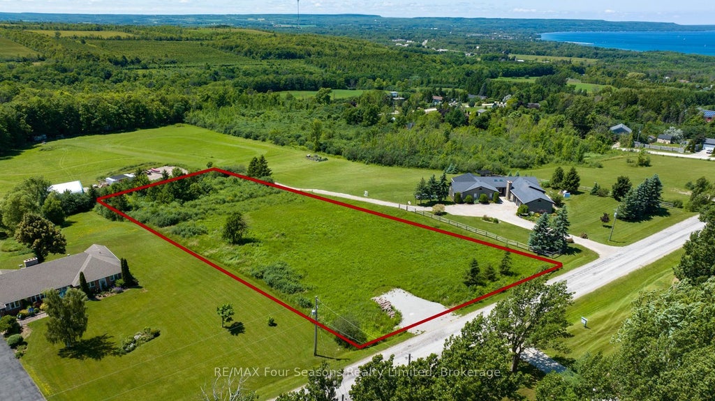 1.69 acre building lot with breathtaking valley and bay views The majority of the lot is flat, with a gentle slope at the back, making it an ideal location for a bungalow with a walkout basement. The property's location is highly convenient, as it is only minutes away from downtown Meaford and a short drive to Thornbury, where you can enjoy a wide range of amenities. The region offers world-class golf courses, skiing opportunities, a picturesque harbour for boating, excellent restaurants, theaters, and shopping options. With the vast space provided by this lot, you have the opportunity to build your dream home and fully immerse yourself in the stunning views. Finding great building lots is challenging enough, but finding one with such remarkable views is even rarer. To ensure compliance with any height restrictions and setbacks that may apply, contact for further information. Additionally, thanks to the western exposure, you'll have the pleasure of witnessing lovely sunsets from your backyard, which overlooks unobstructed views of the valley and the Escarpment. Don't miss the chance to secure this exceptional property and start turning your dream home into a reality, while enjoying the beauty of the surrounding landscape.