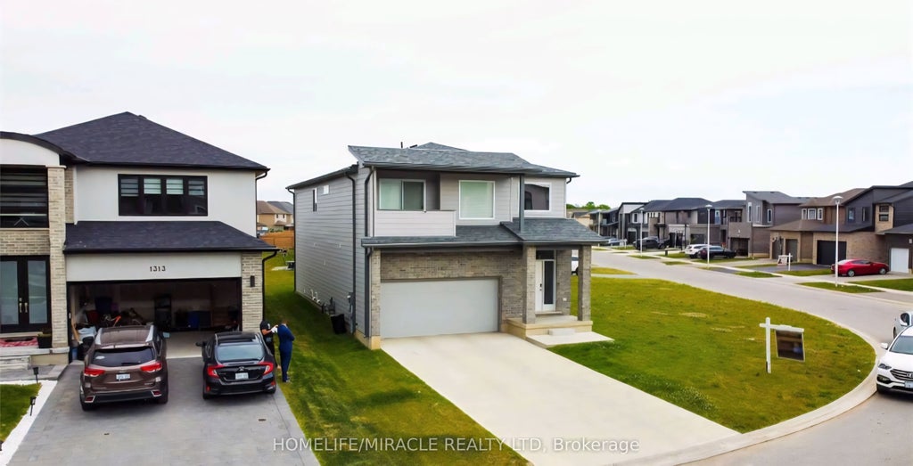 Stunning modern detached home situated on an expansive unique lot in London! Step into contemporary luxury with this beautifully upgraded 4 bedroom detached home, where every detail has been thoughtfully designed for style and comfort. You're greeted by a soaring open to above foyer that sets the tone for the home's bright, open concept layout. The spacious living room flows seamlessly into a sleek two-tone kitchen, complete with quartz countertops and premium finishes. Walk out to a covered deck with elegant glass railings, ideal for relaxing or hosting guests year round. The glass railed staircase leads you to 4 generously sized bedrooms. The primary bedroom is a true retreat, featuring an ensuite with his & her sink, private balcony, and an expansive walk-in closet for your wardrobe dreams. Amazing location as it's in the heart of a growing and family friendly community in London, close to schools, parks, shopping, and all major amenities.