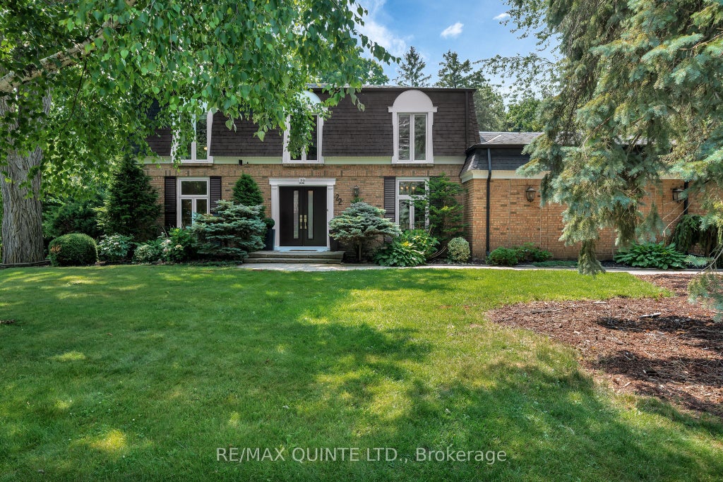 A rare opportunity to own one of Belleville's most impressive executive properties. Situated on approximately half an acre on a triple lot in the East end, this stunning two-storey home offers over 3,700 sq. ft. of living space, plus a two-car garage, a separate pool house with its own two-piece bathroom, and a backyard oasis unlike anything else in the city. The main floor has been thoughtfully updated while maintaining its timeless character. At the heart of the home is a stylish kitchen with granite countertops, a large centre island with bar seating, stainless steel appliances, ample storage, and views of the pool and patio. The oversized dining room easily accommodates large gatherings, while the formal living room and the stylish lounge, featuring a wood-burning fireplace and wet bar, provide versatile, luxurious, and cozy entertaining areas. Off the lounge, a showstopping 4-season solarium with floor-to-ceiling glass creates a perfect transition between indoors and out. The main level also features a bright dedicated office, a large foyer, a dedicated laundry closet, a powder room, and direct access to the oversized two-car garage. Upstairs, the massive primary suite spans over 400 sq. ft. and includes a walk-in closet, two additional closets, and a six-piece ensuite bathroom. Two more generous bedrooms and an updated five-piece main bath complete the upper level. The lower level offers over 700 sq. ft. of open rec room space, a modern three-piece bathroom, and a huge unfinished storage area. Outside, enjoy mature trees, a disc golf basket to practice your throw, a beautiful pool, a hot tub, landscaped gardens, a natural gas BBQ hookup, and an interlock patio. There is also a separate gazebo with a large dining table, accommodating more guests and offering family-style outdoor dining. This home was made for entertaining. A truly exceptional property close to schools and amenities. You won't find anything else like it.